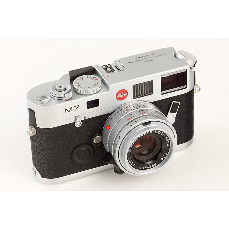 unique chrome M7 in mint condition with chrome Summicron-M 2/35mm Asph. No.3994441, presented to the famous English photographer Martin Parr for winning the Erich Salomon Prize in 2006, top-plate engraved 'DGPh Dr.Erich Salomon Preis 2006 Martin Parr', body cap, strap, papers, maker's box for the body, the lot also includes two B&W baryt prints by Martin Parr
