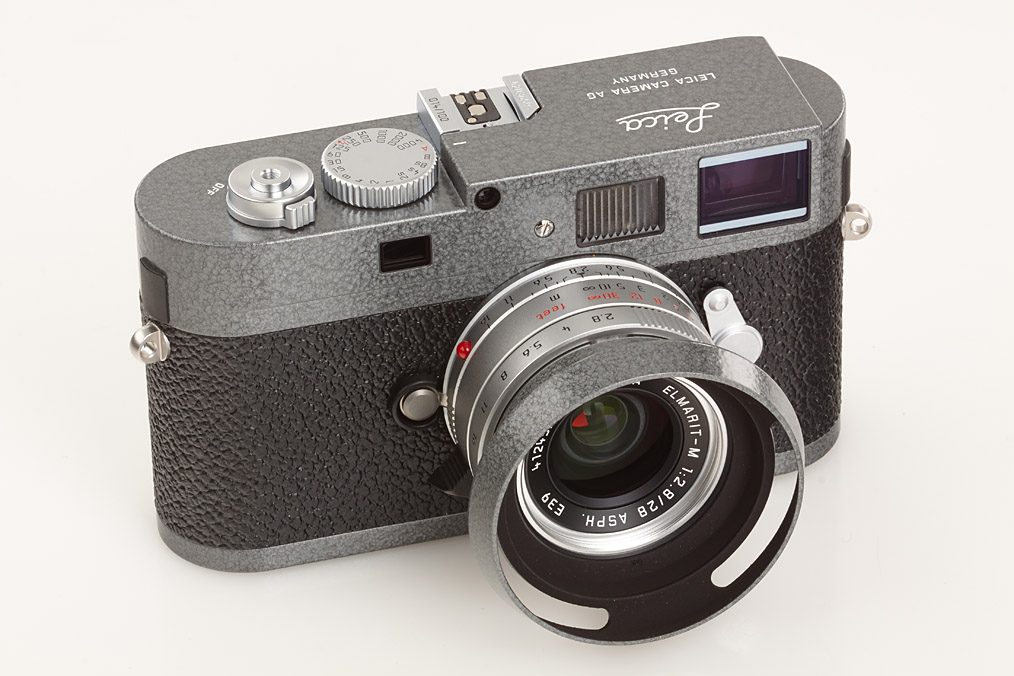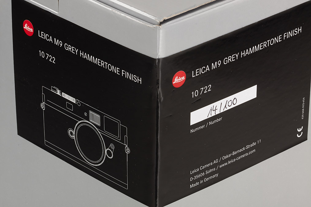 Leica M9-P Grey Hammertone finish limited edition for Japan in new condition. Total production 100 sets only. Edition number 14/100. Complete with matching rare chrome Elmarit-M 2.8/28mm no.4124551 with hammertone hood. All complete with boxes and papers.