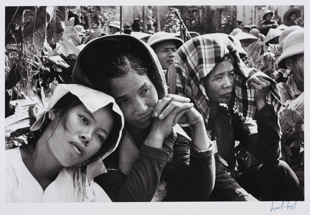 2 Gelatin silver prints, printed 1975, exhibition prints 27,8 x 18,5 and 43,7 x 28,6 cm Both signed by the photographer in ink in the margin, both annotated in an unidentified hand in pencil on the reverse - Witwe am Begräbnis ihres Mannes / Widow at the funeral of her husband, Saigon, 1969 - Verkündung von Ho Chi Minhs letztem Willen / Proclamation of Ho Chi Minhs last will, North Vietnam, Phat Diem, 1969