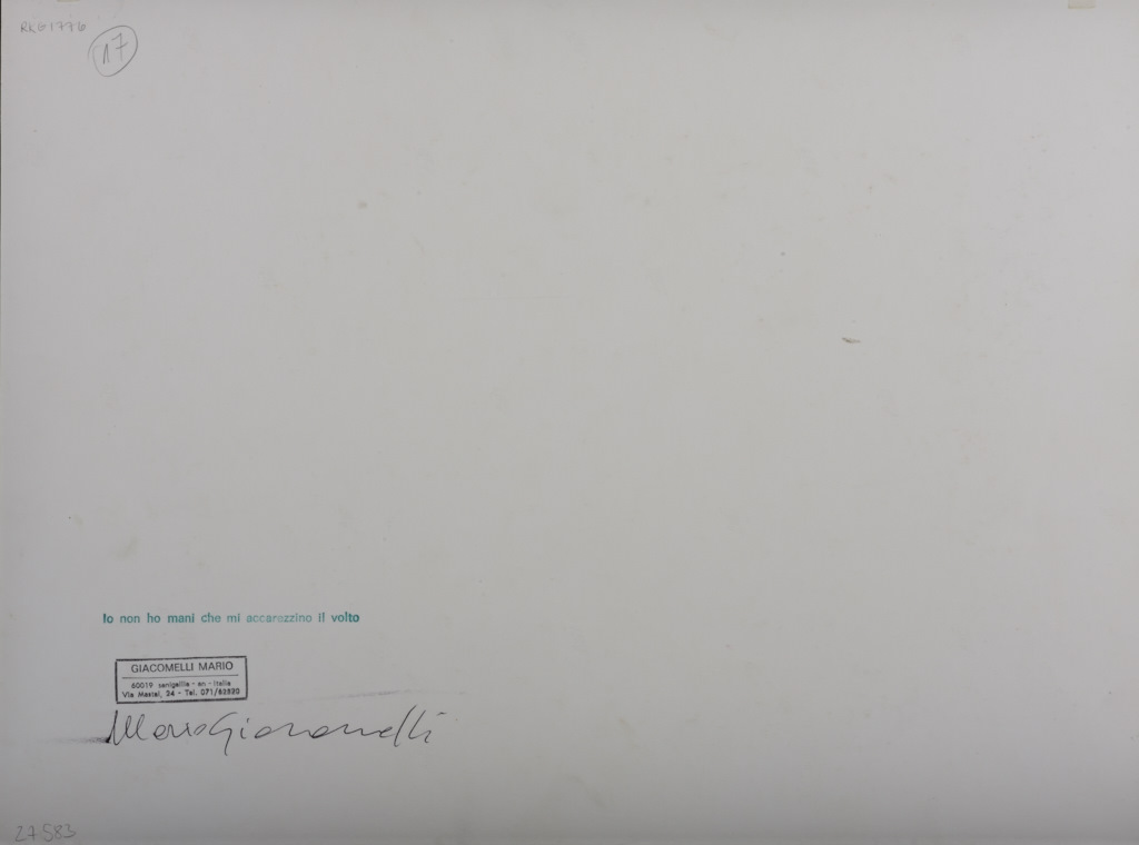 MARIO GIACOMELLI (1925–2000) ‘Lo non ho mani che mi accarezzino il volto’ (There are no hands to caress my face), Pretini 1961–1963