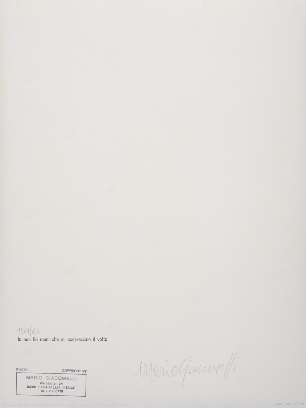 MARIO GIACOMELLI (1925–2000) ‘Lo non ho mani che mi accarezzino il volto’ (There are no hands to caress my face), Pretini 1961-63