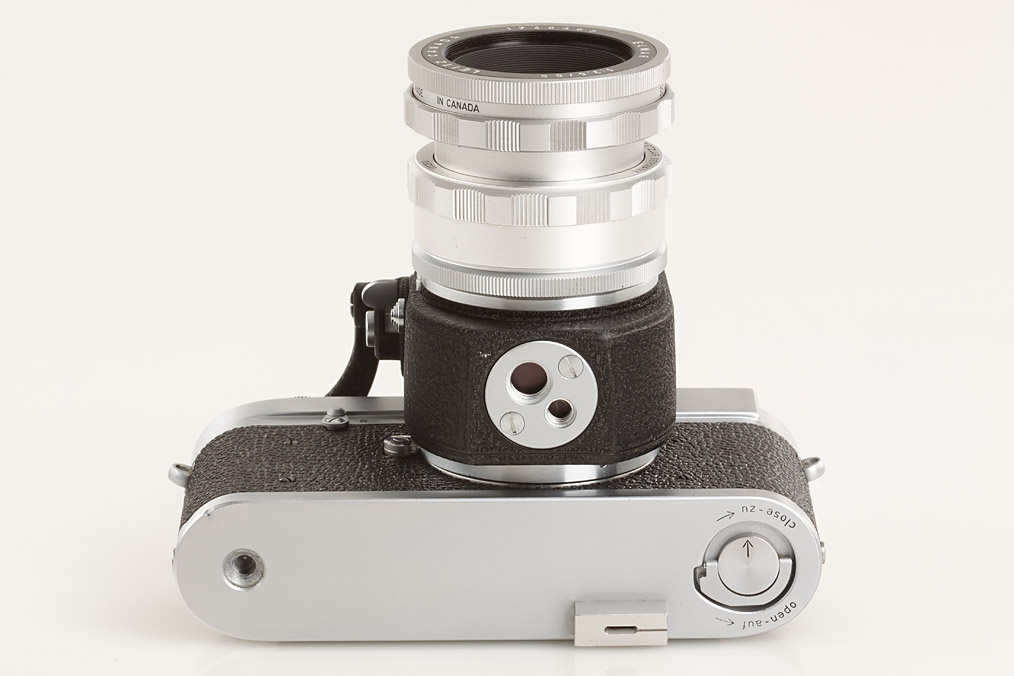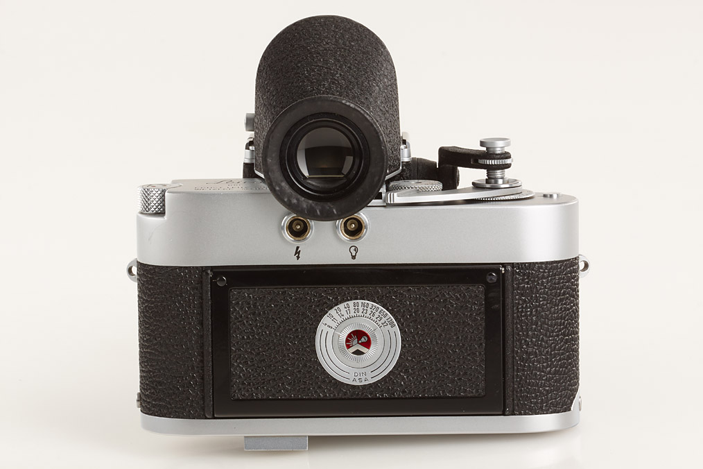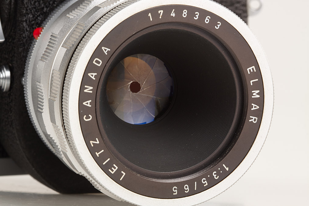body in good working order with Visoflex II, prism finder and chrome Elmar 3.5/65mm no.1748363 (clean lenses) in OTZFO short focusing mount (cap)