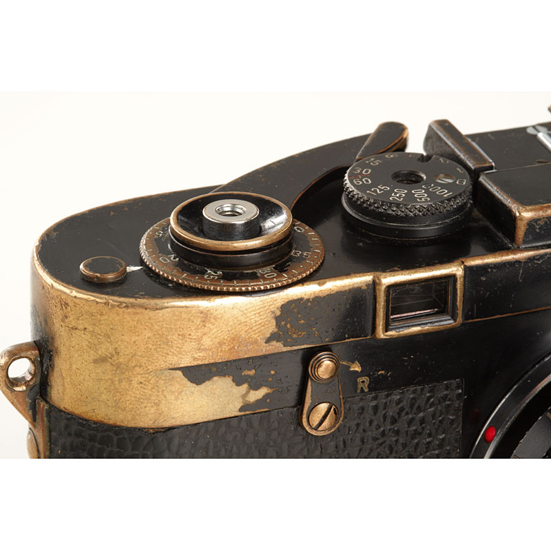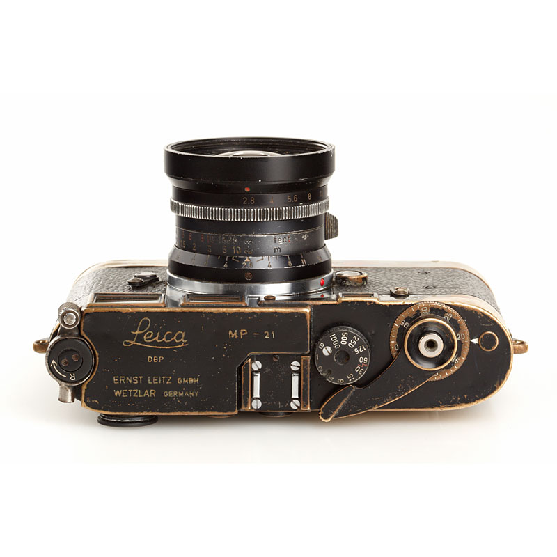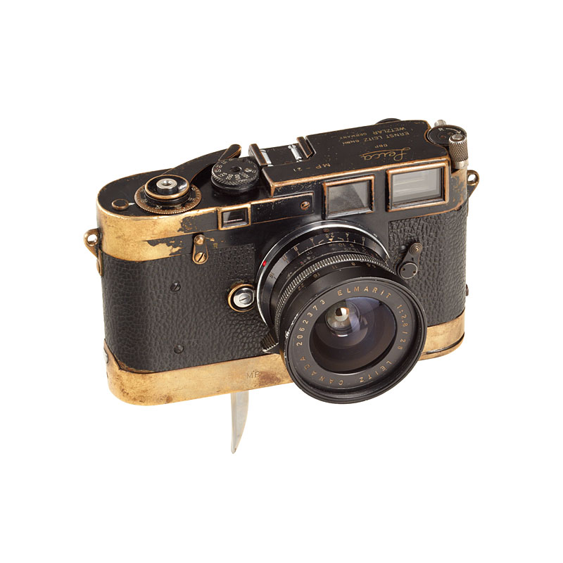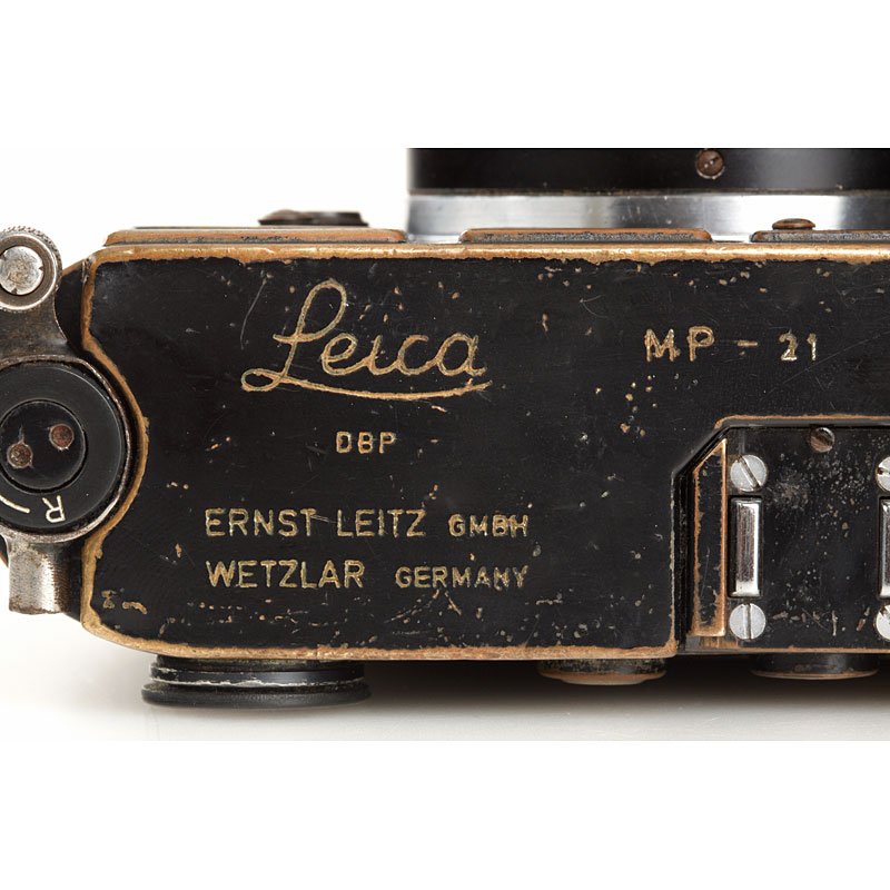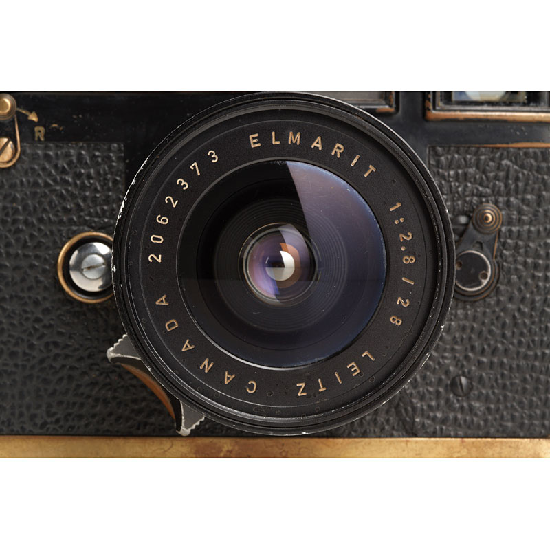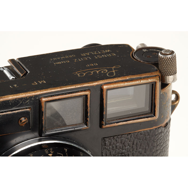 Very early and fully original black paint MP (the camera has never been modified and comes with the black Leicavit MP, the typical rewind crank used by Magnum photographer with a very early 9-element Elmarit 2.8/28mm no.2062373) used for many years by it's first owner, Magnum photographer Paul Fusco (born 1930), who started his work for Look. He became an associate of Magnum Photos in 1973 and a full member a year later. Over the years, Fusco also contributed to such publications as Life, Mother Jones, the New York Times Magazine, Newsweek, Psychology Today and Time. His photography often documented social issues and injustices, such as poverty, ghetto life, and cultural experimentation across America. He also worked internationally covering events in Europe, the Middle East, and Southeast Asia. In the late 1990s he spent two months documenting the legacy of the Chernobyl meltdown in Belarus. Fusco moved to Mill Valley, California in the 1980s but is now based in New York City. Many of his photographs are in the Magnum Photos archive currently held at the Harry Ransom Center at the University of Texas at Austin. For all his work he used this and the 2 other Leica MP cameras (MP-46, MP-228) offered in this auction. ('Peter, it is very interesting and pleasurable to be involved with you in this kind of mythical adventure about these truly beautiful cameras'), included photographs showing Paul Fusco with his cameras and letter of confirmation by Paul Fusco.