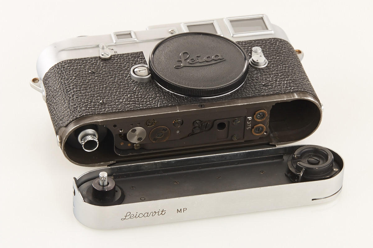 MP in beautifully, original and perfect working order, clean finder and shutter, with matching Leicavit MP, matching chassis number inside the camera - rare camera in 100% original never restored or updated condition !