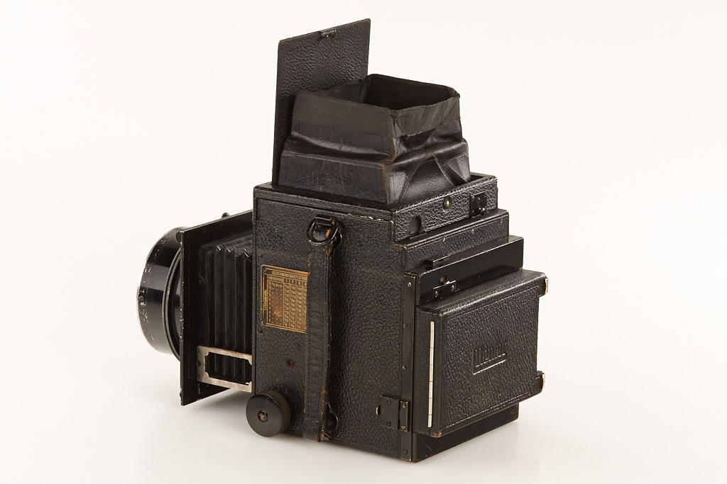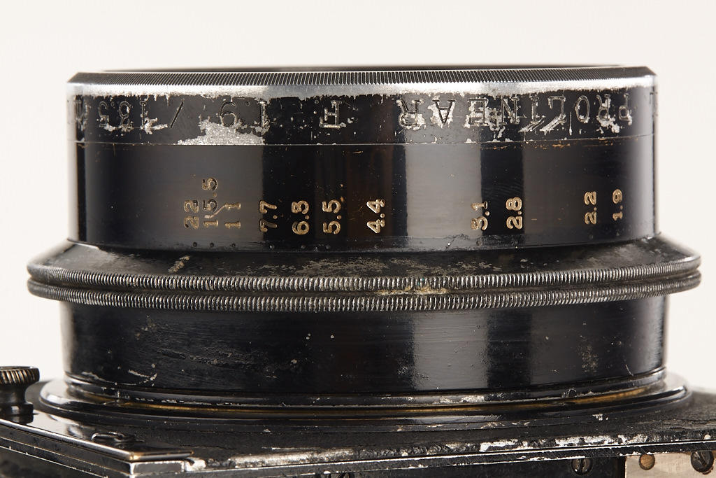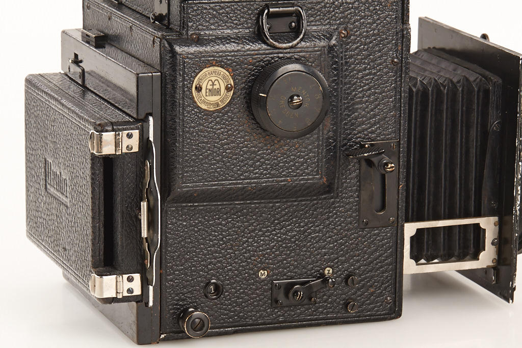 6.5x9cm, in very fine original condition, focal plane shutter (working but not accurate and dry) for speeds up to 1/1300, with fast RietzschelProlinear 1.9/13.5cm no.162395, original cap and film pack adapter, rollfilm holder