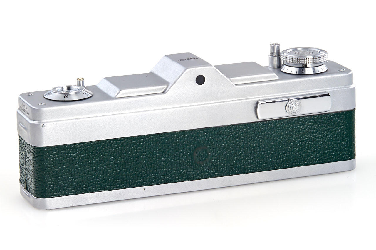for stereo exposures on 16mm film, 1st model with green leather covering, both caps, in very good condition