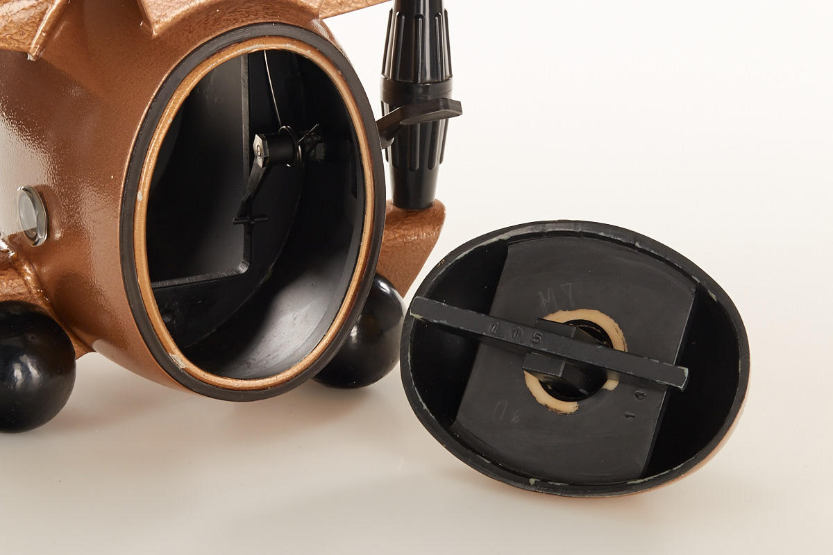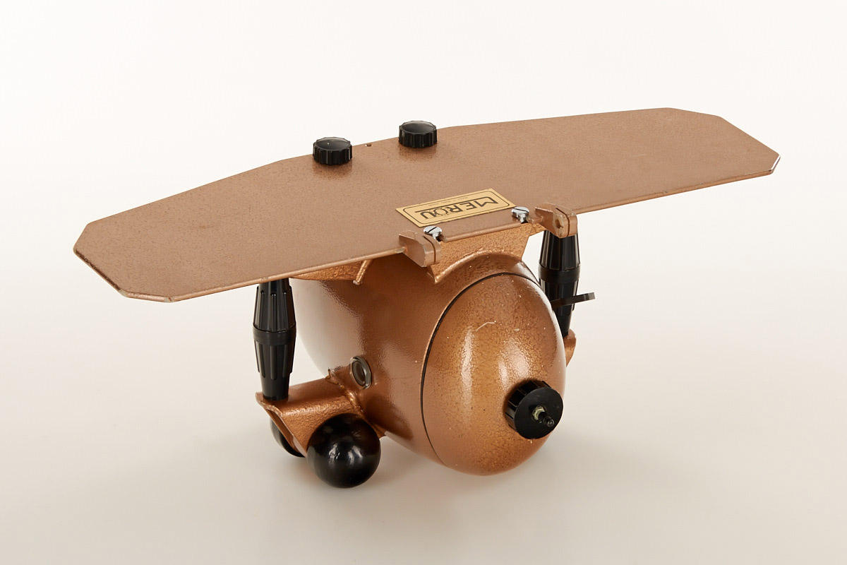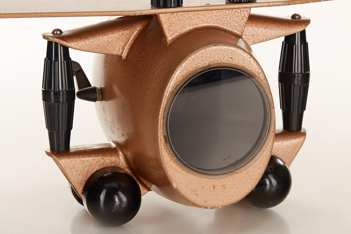 rare French underwater housing for medium format TLR named after the fish, plastic hood (broken) and cord, on top a plaque engraved 'Marque et Modèle dèposès'
