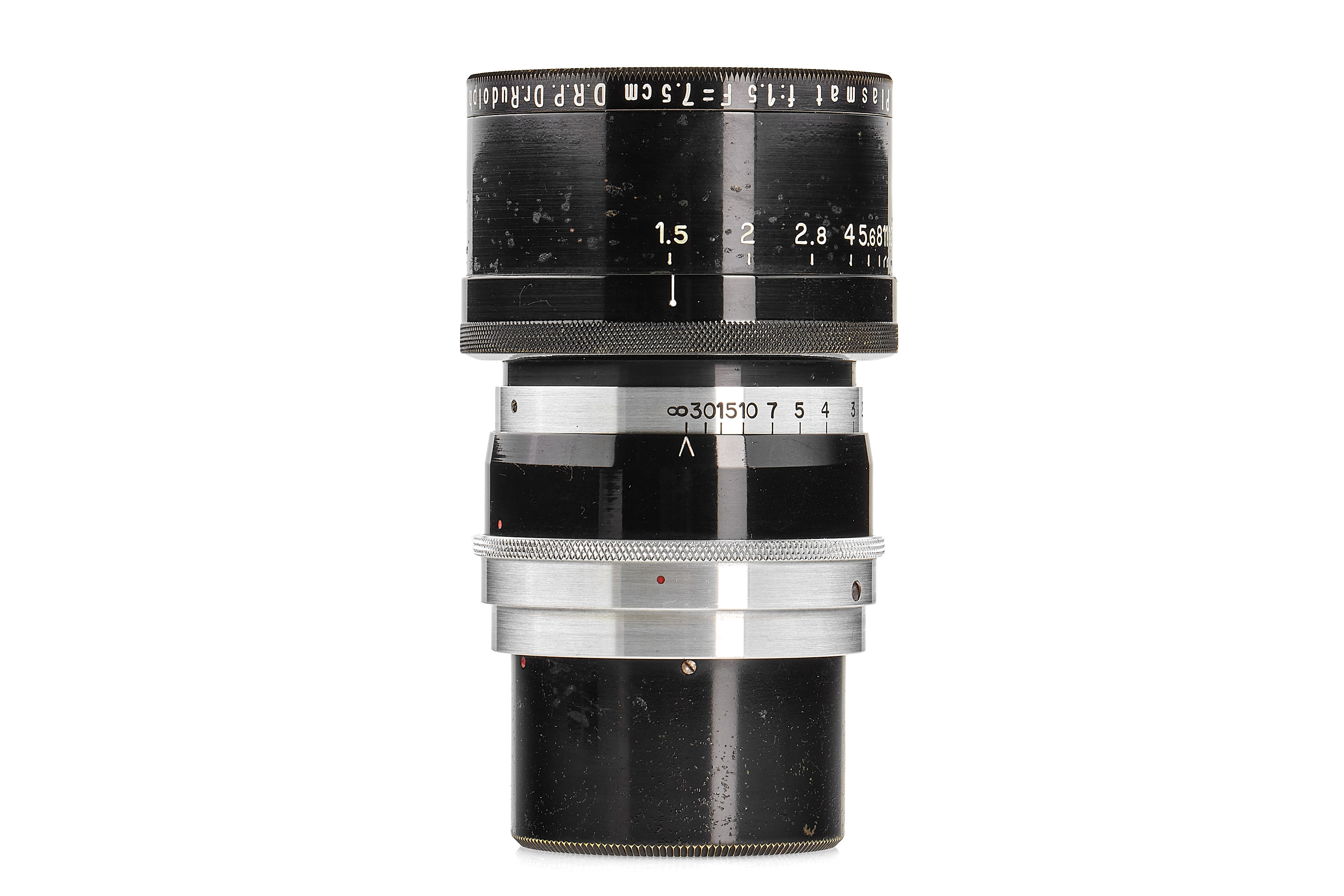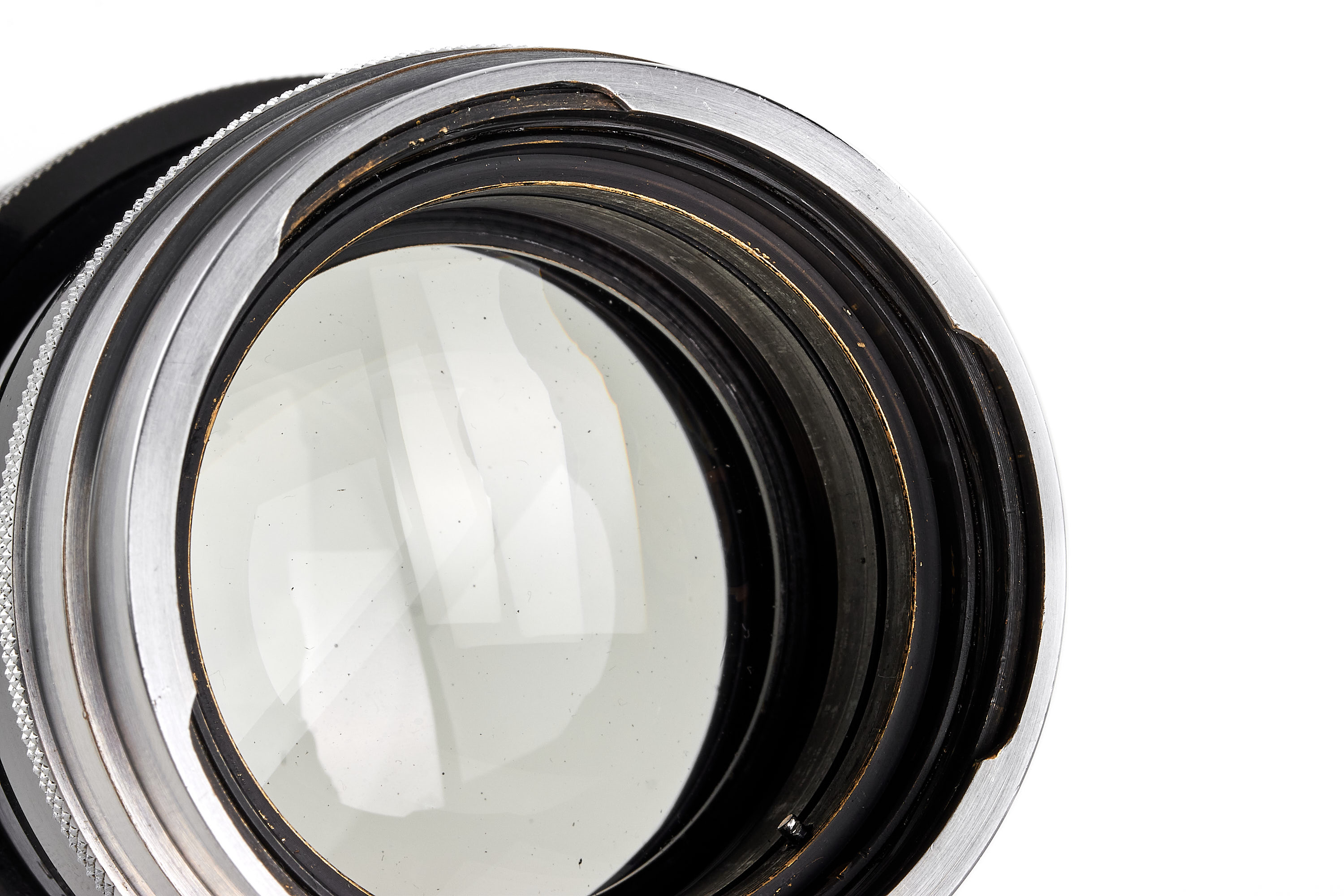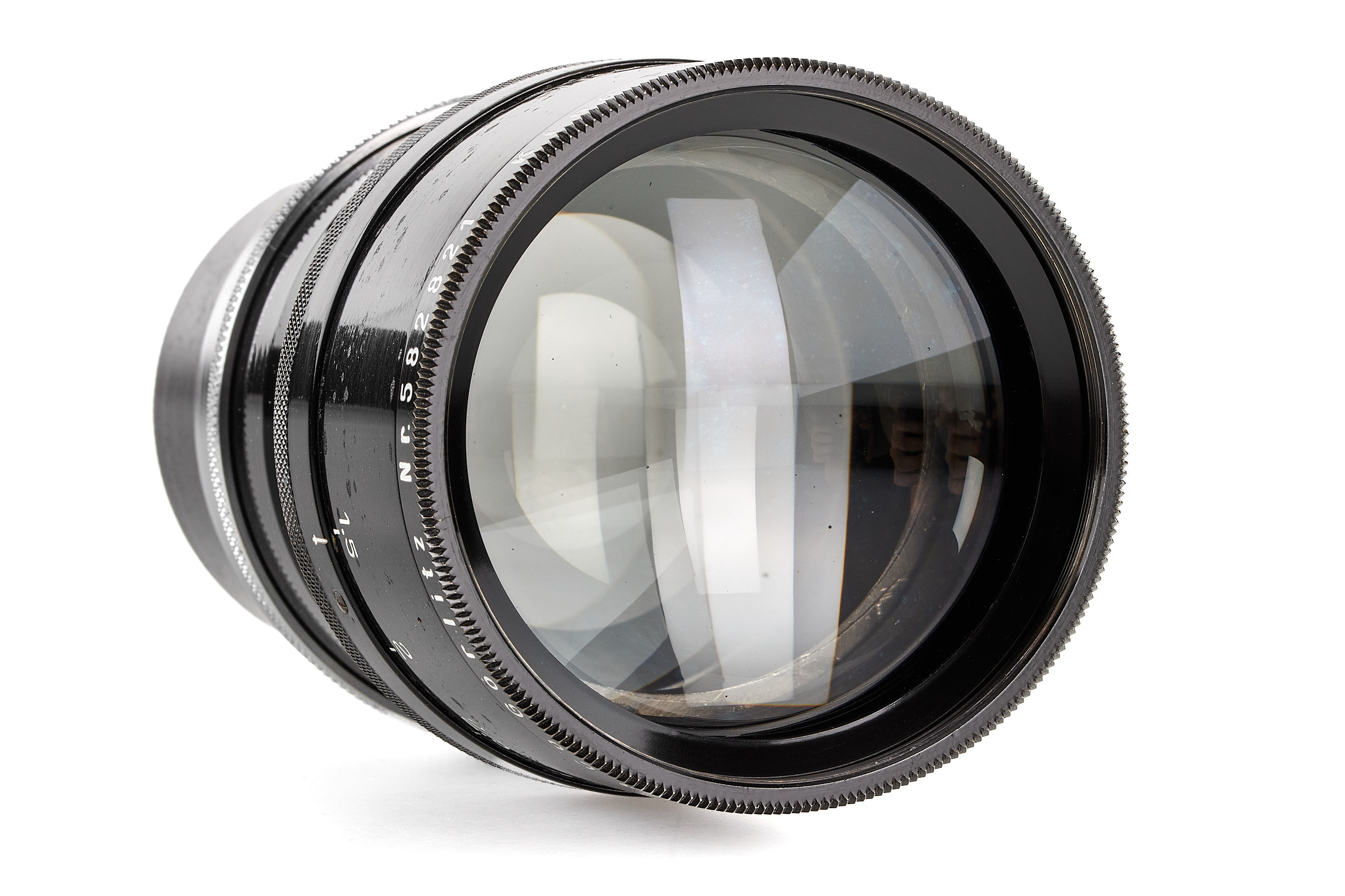 An extremely rare Kino Plasmat 7.5cm in original Contax mount, designed to be mounted on both inner and outer Contax mount simultaneously (!), the outer mount ensures an optimal stability of this heavy lens, the inner mount is responsible for the focus coupling. The lens is in beautiful condition, with very good optics, and comes with a hood and both caps. Only a few examples of this rare lens are known to exist - this may well be the best preserved one.