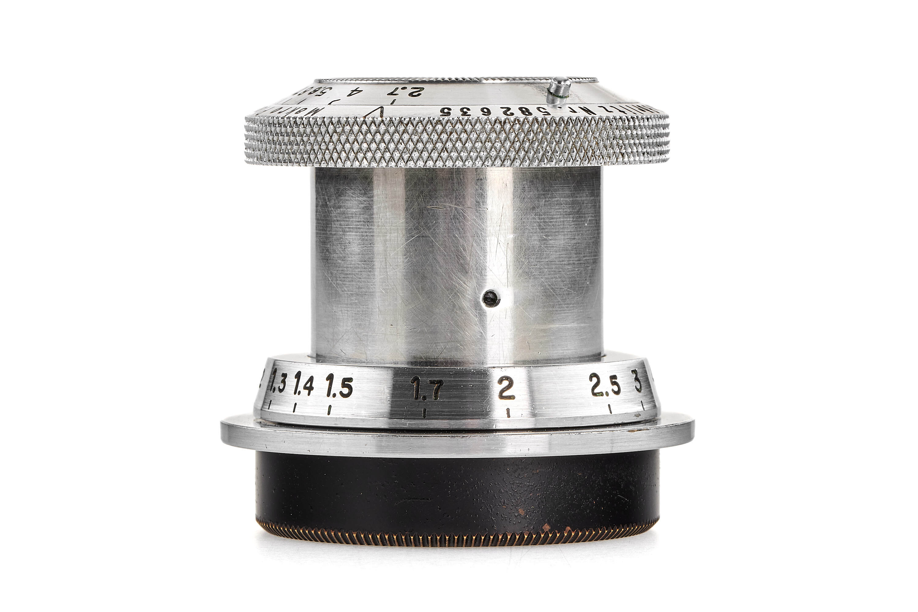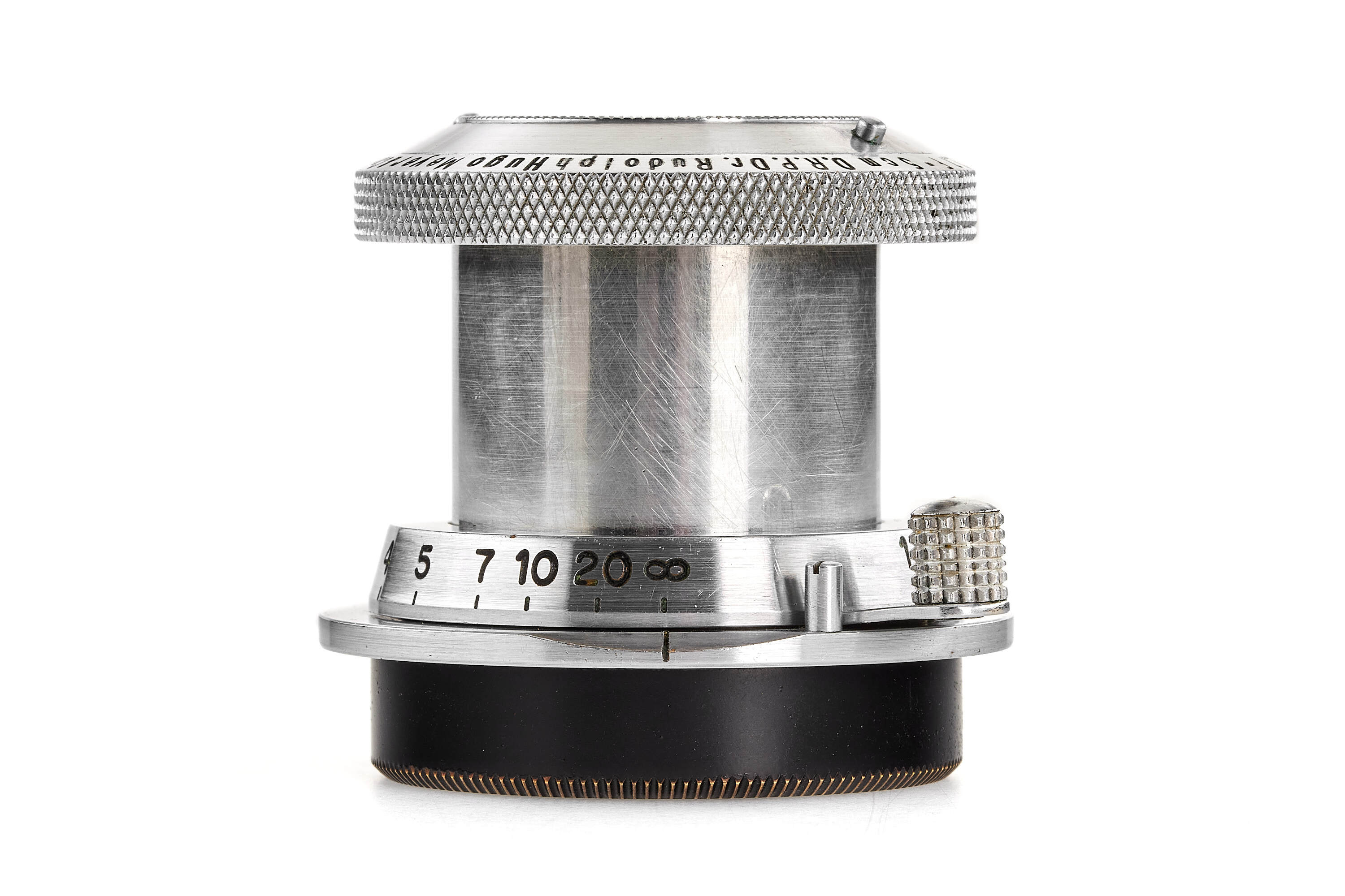An extremely rare and sought-after Makro Plasmat in original, collapsible rangefinder-coupled Leica M39 mount, chrome finish, in excellent condition, very good optics (only minimal flaws), with an uncommon UV filter.