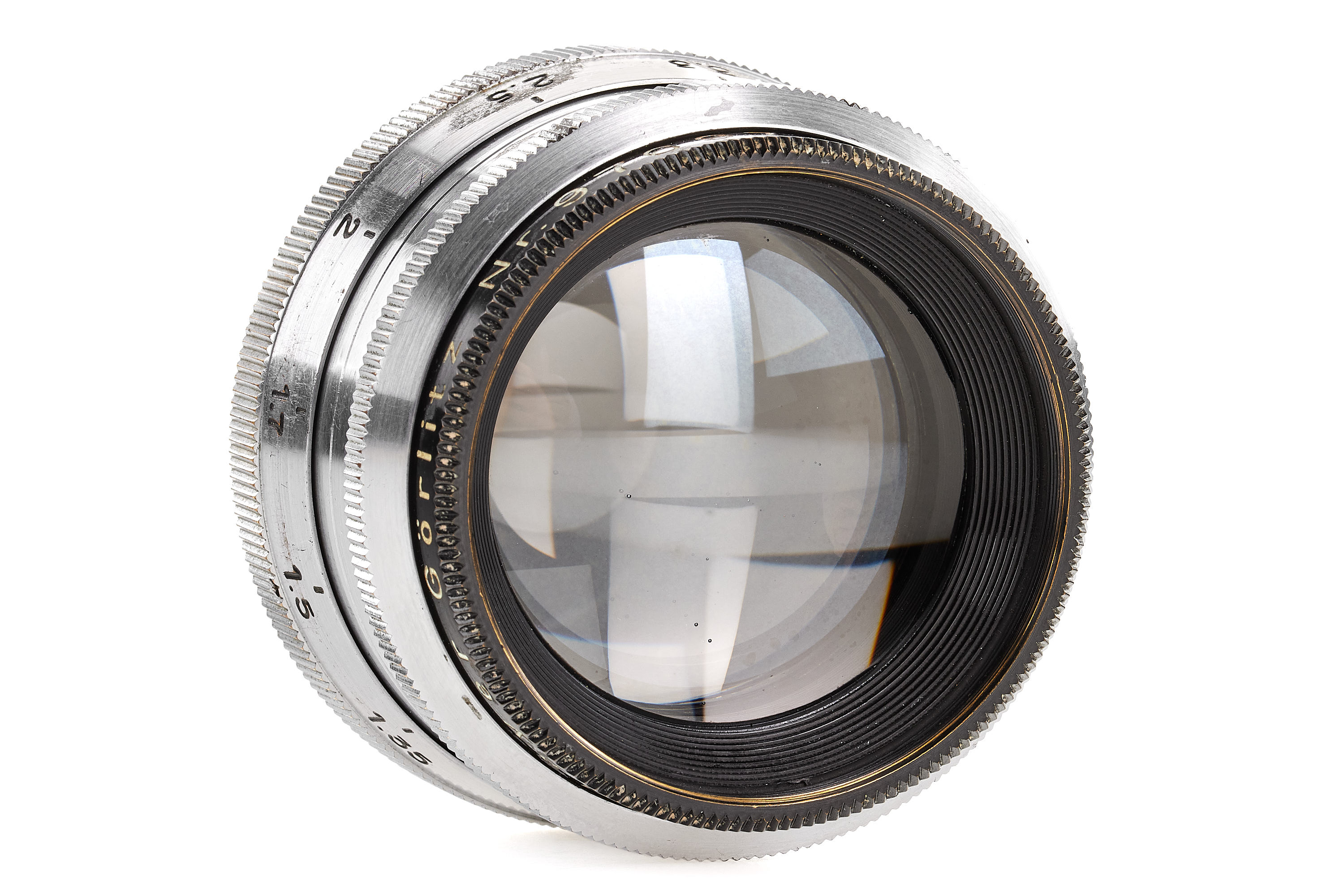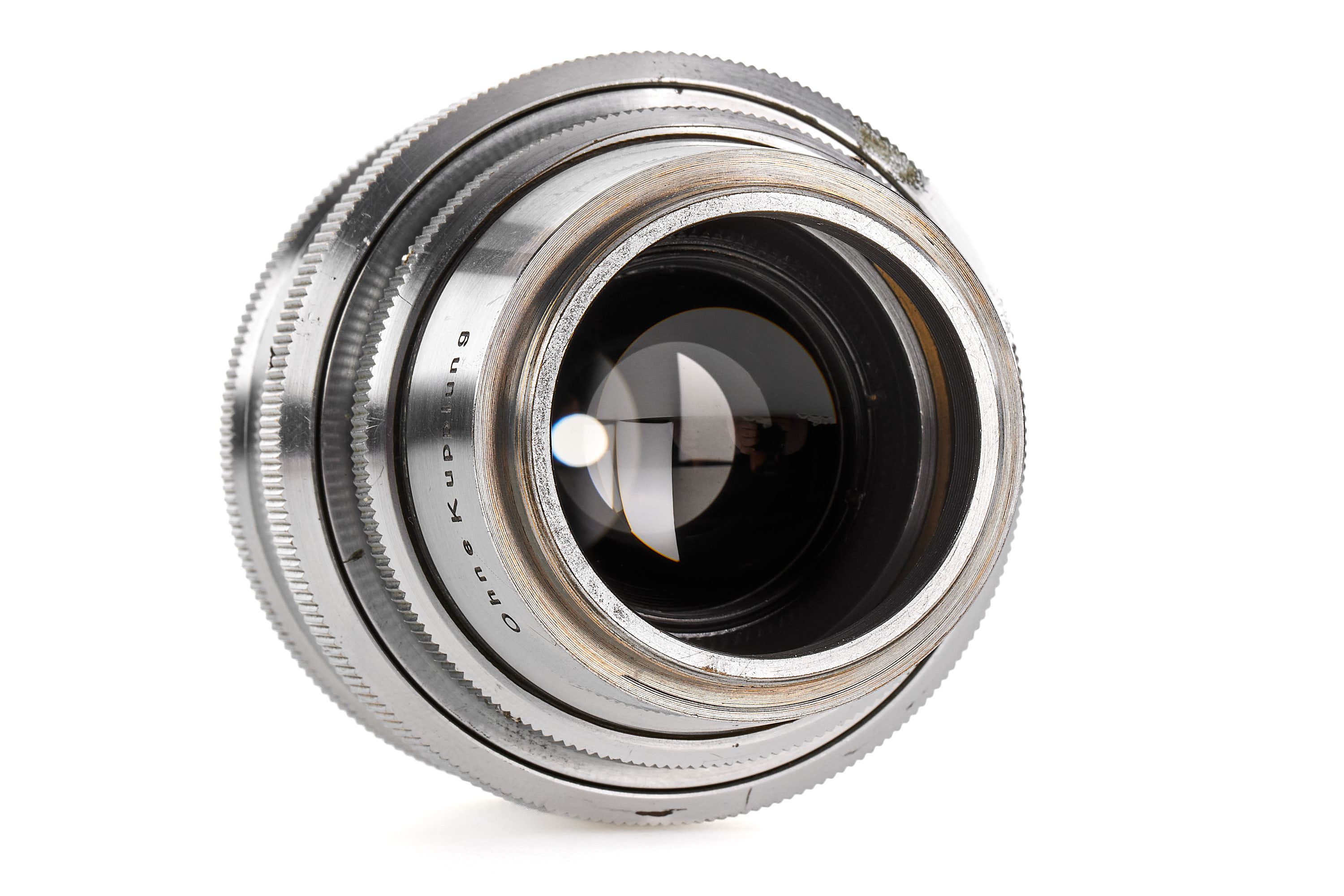 Rare and sought-after fast Primoplan in Leica M39 mount (not rangefinder coupled - engraved near the mount with 'Ohne Kupplung'), in good condition, very good optics only showing very light cleaning marks, with original metal hood and both caps.