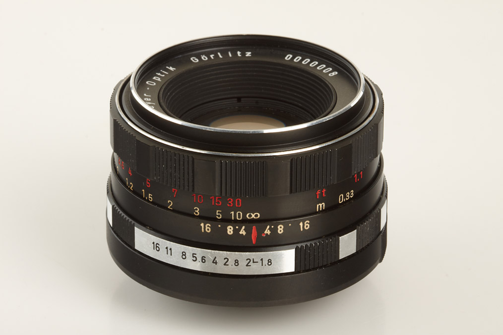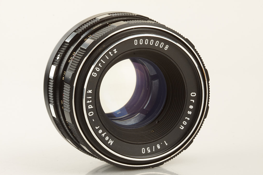 three very rare prototype lenses with M42 screw mount and Praktina bayonet mount: (1) Oreston 1.8/50mm no.0000008 for M42, Orestor 2.8/100mm no.39 999 907 B for M42, (3) (Primotar) 3.5/135mm no. V 02 999 907 A for Praktina (3)
