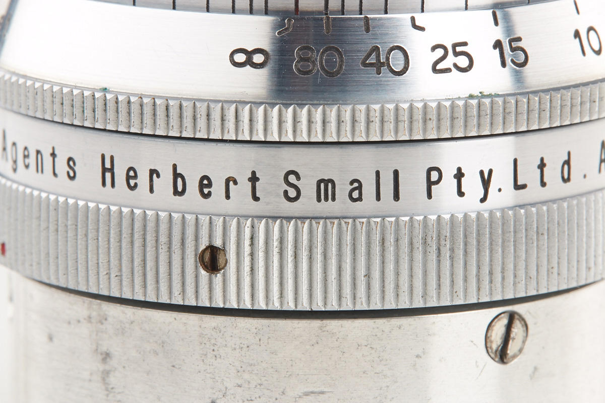 heavy brass Primoplan in Exakta mount with adapter for M39 screw mount, cleaning marks on front element, in very fine cosmetic condition, barrel engraved 'Sole Australian Agents Herbert Small Pty.Ltd Australia'