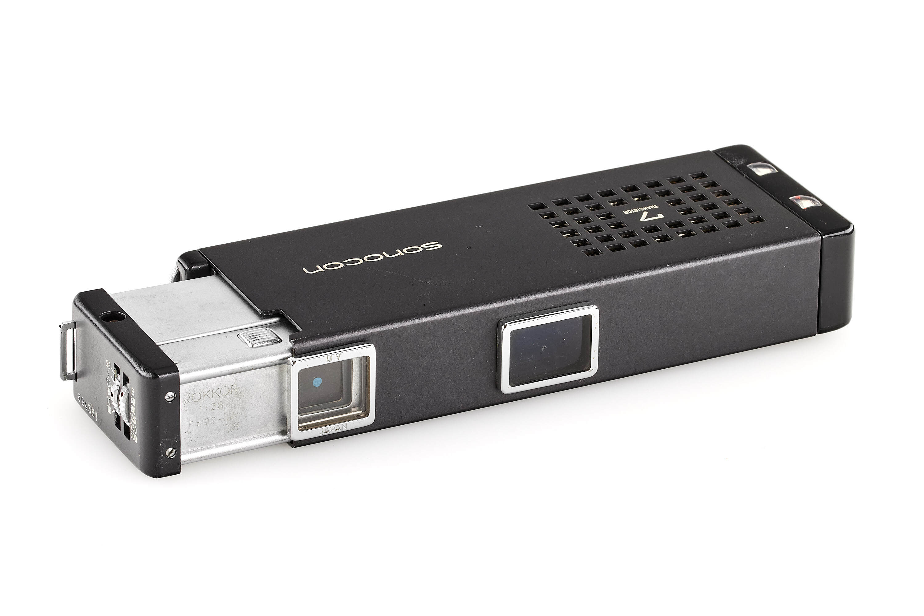 Rare 16mm film camera (Minolta 16-II) combined with a transistor radio, Rokkor 2.8/22mm, in excellent condition (small crack on the plastic housing of the radio, not visible outside).