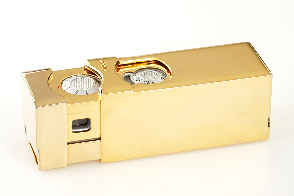 Minox A camera and cigarette lighter built into gold plated brass housing, very attractive and rare set