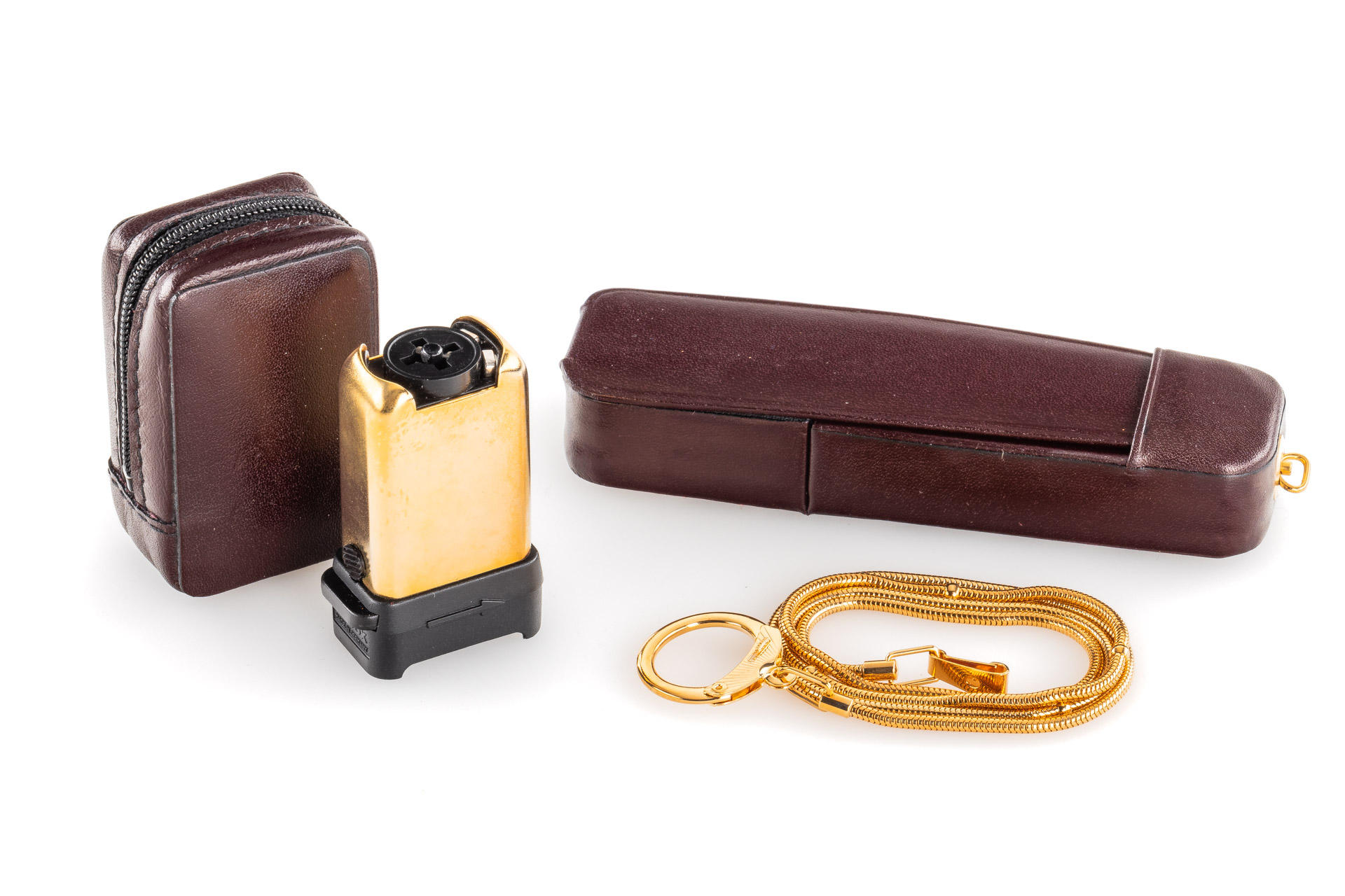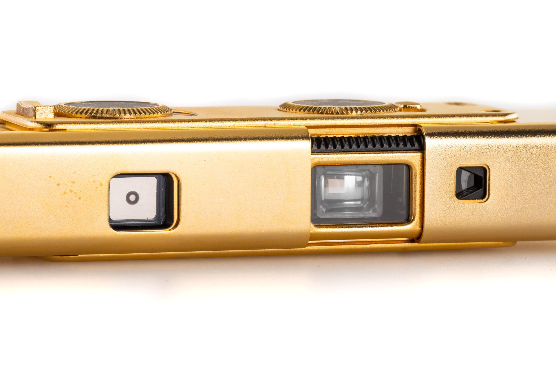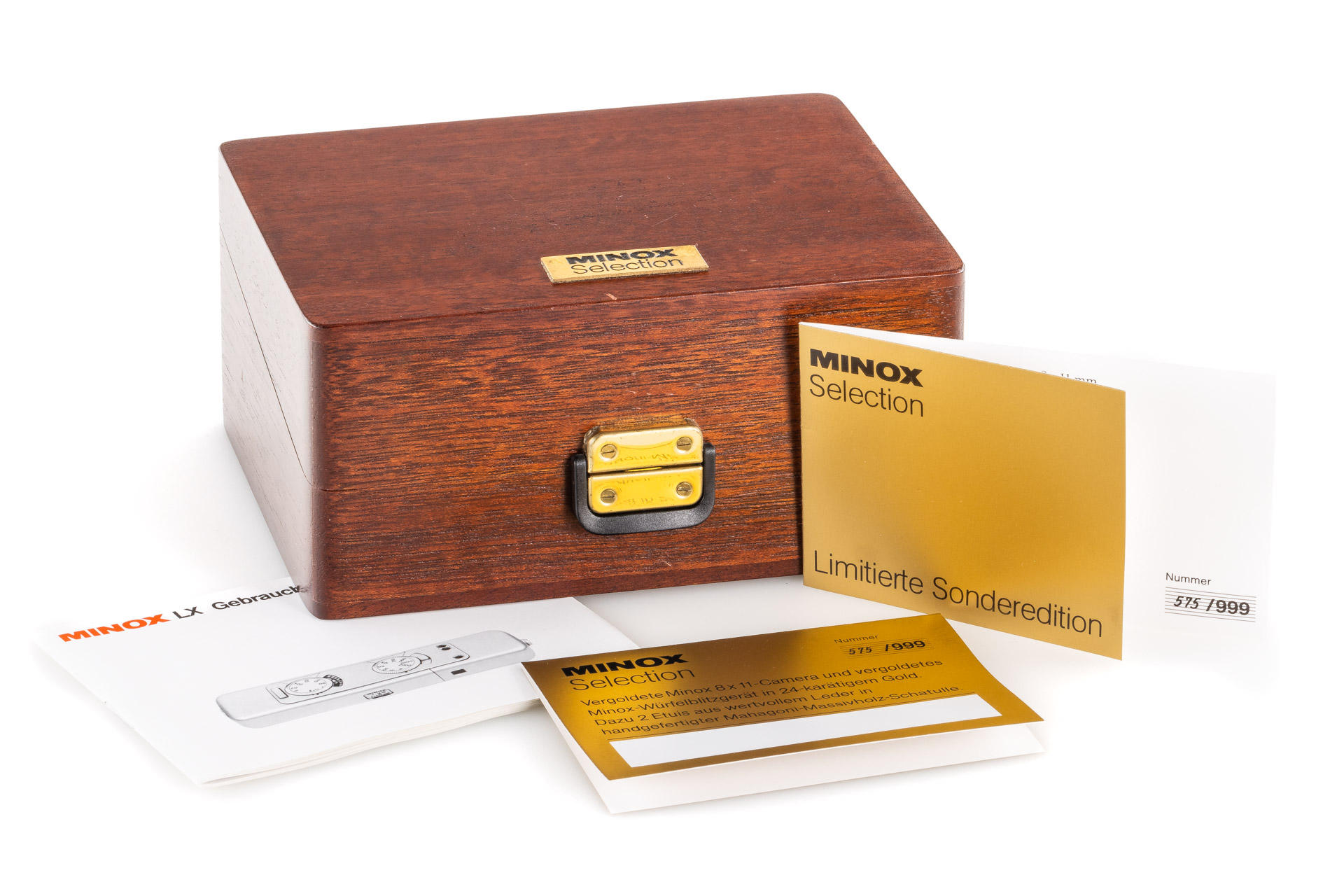 limited edition with gold plated finish, in mint condition and working order, complete with flash, leather cases, certificate, papers and wooden box