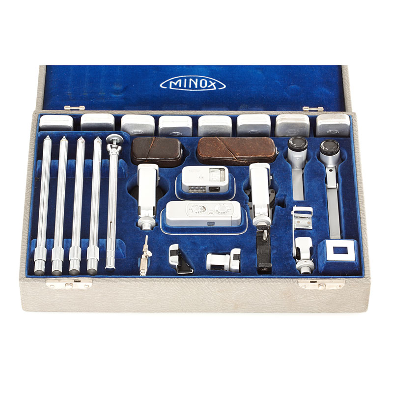 extremely rare original Minox demonstration case with blue velvet inlet with Minox A no.47488 and various accessories