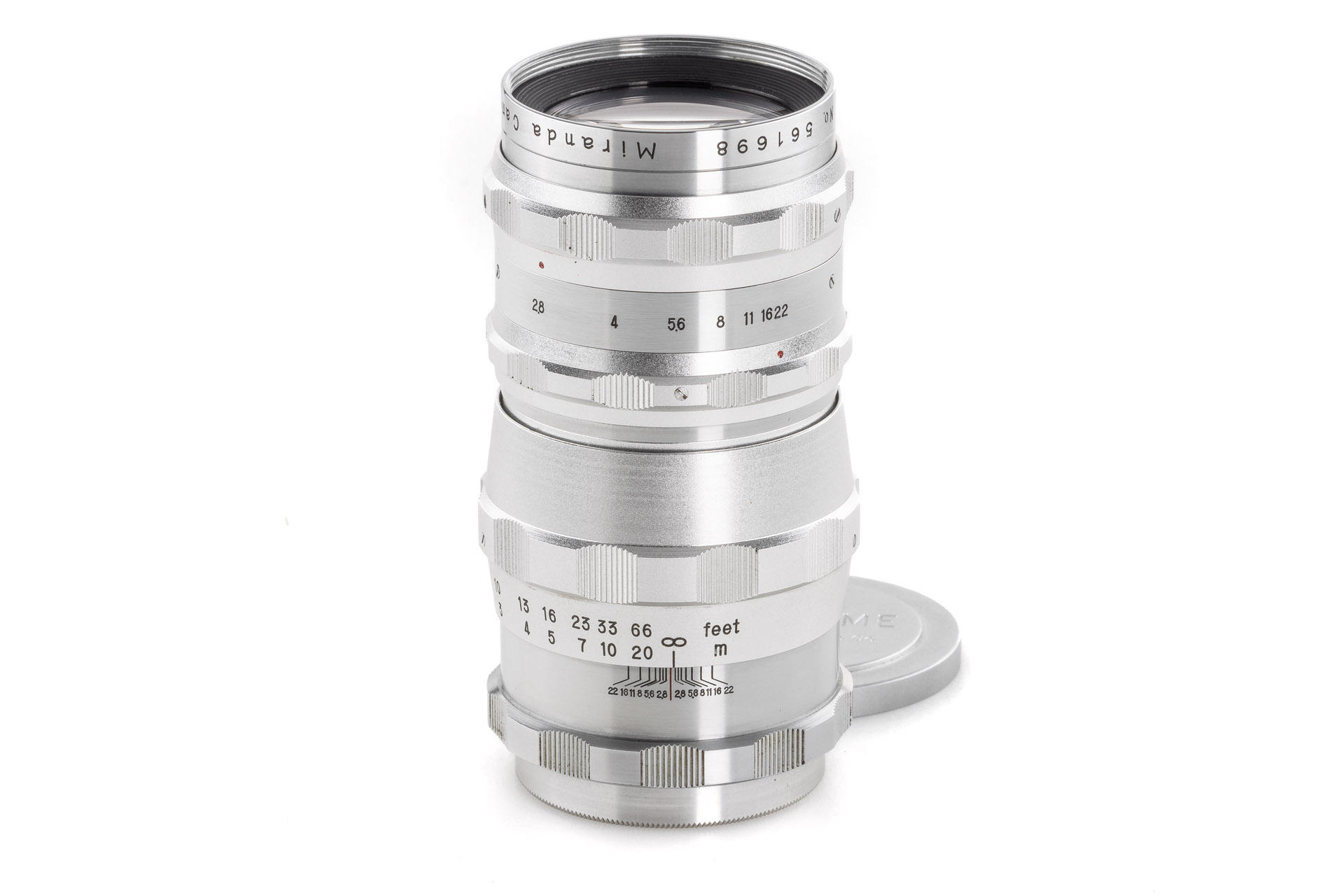 rare short telephoto lens with Miranda M44 mount, in beautiful, near-mint condition with very good optics, original caps