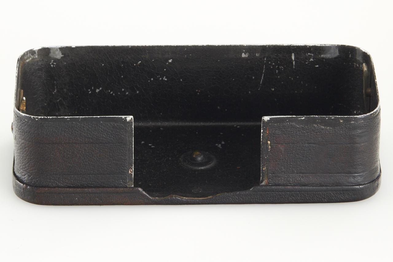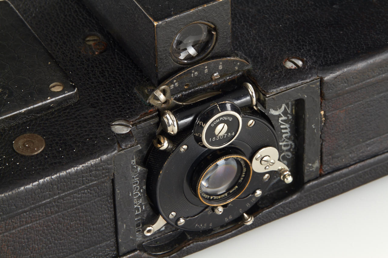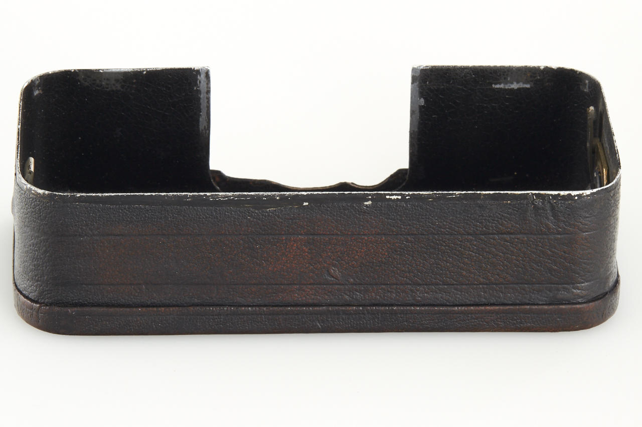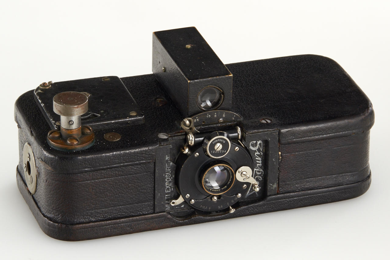 Extremely rare and historically important this is the first production camera for 24x36mm exposures on 35mm film (one of only approximately 27 made, around 5 of these are known to exist). The offered camera this is the only example known with detachable, non-collapsible finder and in good original condition. With Bausch & Lomb Zeiss Tessar 50mm no.1894840, two film spools inside, inclusive original 1914 advertisement from the Travel magazine.