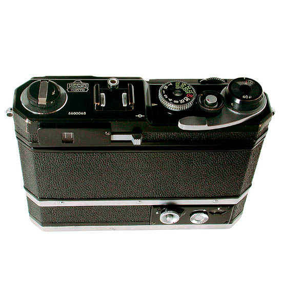 S3M, black, 18 x 24mm half-frame 35mm, 72 exposure film counter, matching Motordrive S72 no.95155 with 72 exposure counter, Nikkor 2/5cm lens, grey battery pack, original maker's box stamped S3-M, camera and drive are in very nice original and working condition, one of the rarest and most collectable of all Nikon cameras, one of a few surviving examples, even fewer in this condition