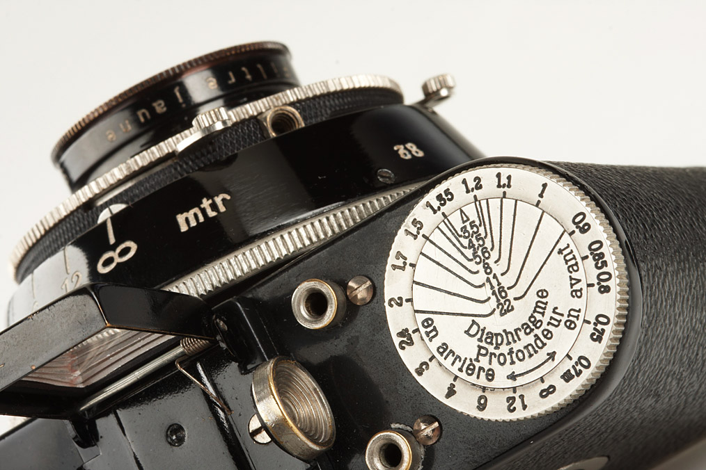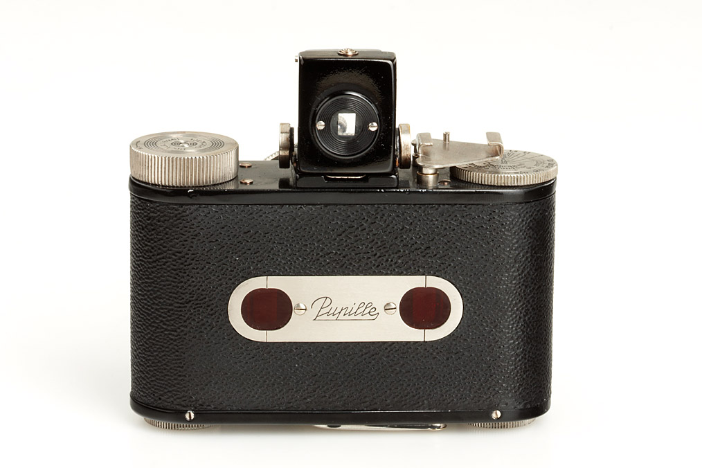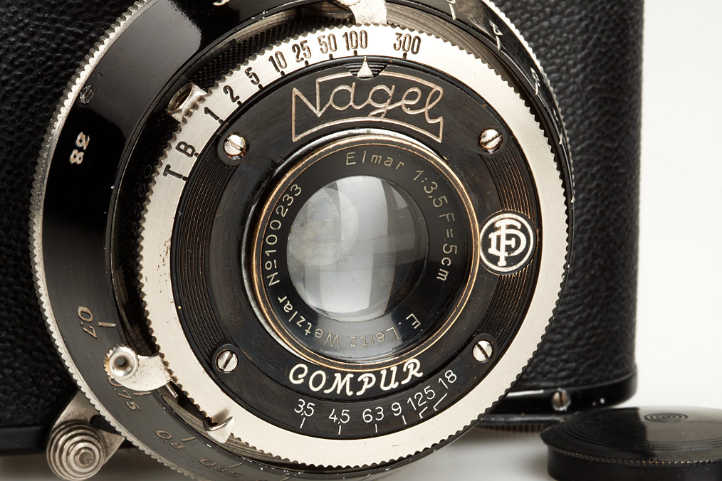 rare French version Pupille in excellent condition, Elmar 3.5/5cm no.100233 (cap), yellow filter (engraved: Nagel Filtre jaune), stand (engraved: Nagel), accessory shoe for rangefinder, original everready case