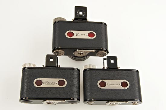 3x4cm exposures on 127 roll film, three different Ranca cameras no.95803, no.98661, no.102502 with collapsible or rigid tubes, various shutters, all 3 cameras in mint condition (3)