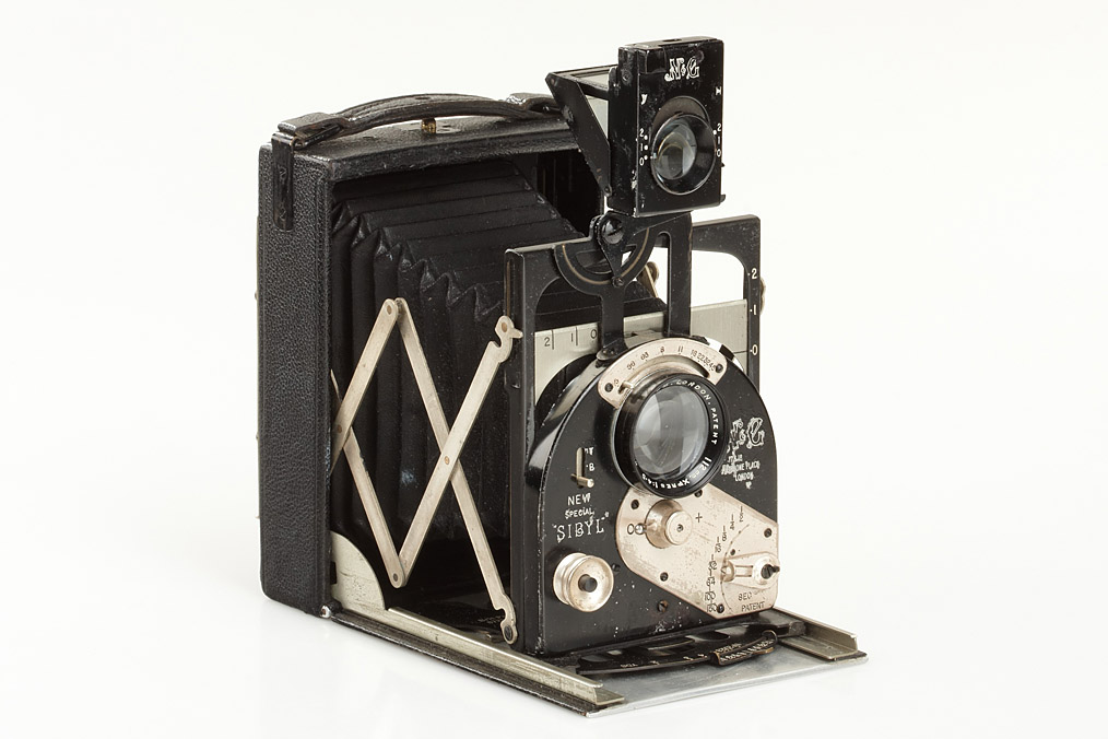 6.5x9cm, plate camera in very good original condition with focusing screen adapter, Ross XPress 4.5/112mm no.110466, rare Dallmeyer Dallon Tele-Anastigmat 9" no.117540, caps, 3 film holders, outfit case