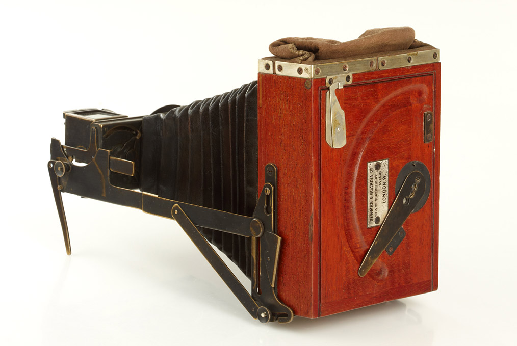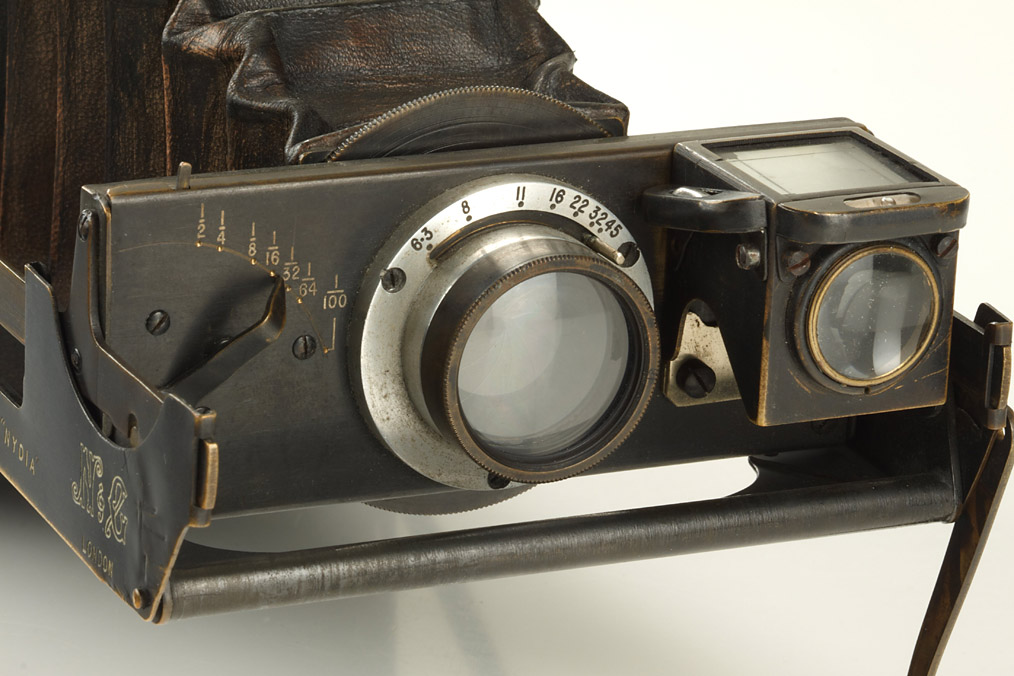 9x12cm, unusual design which is essentially a Newman bag changer for eight quarter plates with changing lever and automatic counter, to which is attached a folding camera, Ross lens, Premo film pack adapter