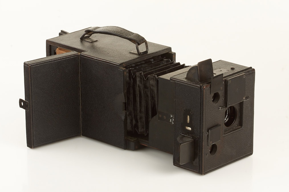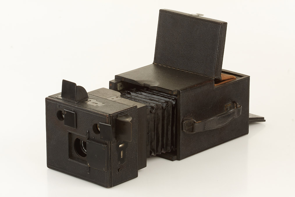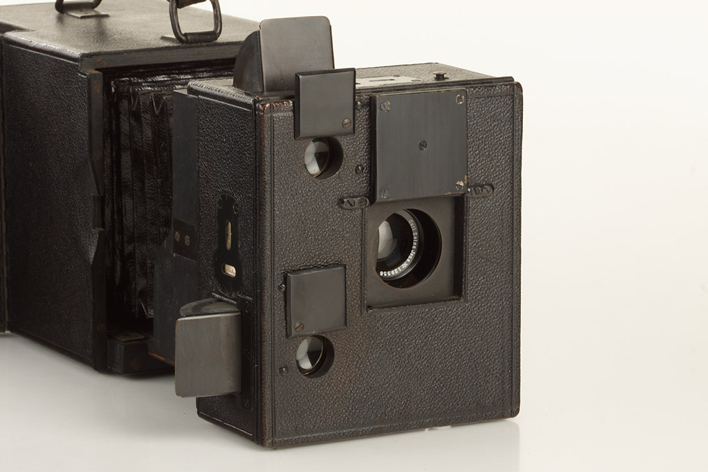 uncommon version for plates 6x8cm, black leather covering, Zeiss Protarlinse VII 18cm no.129358, mahogany leather changing back, in very good original condition with case