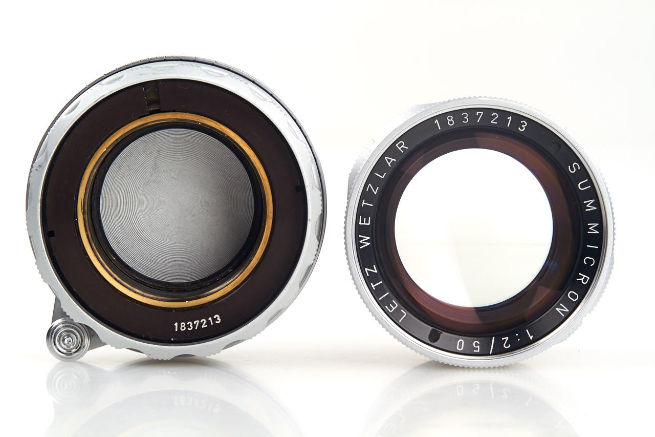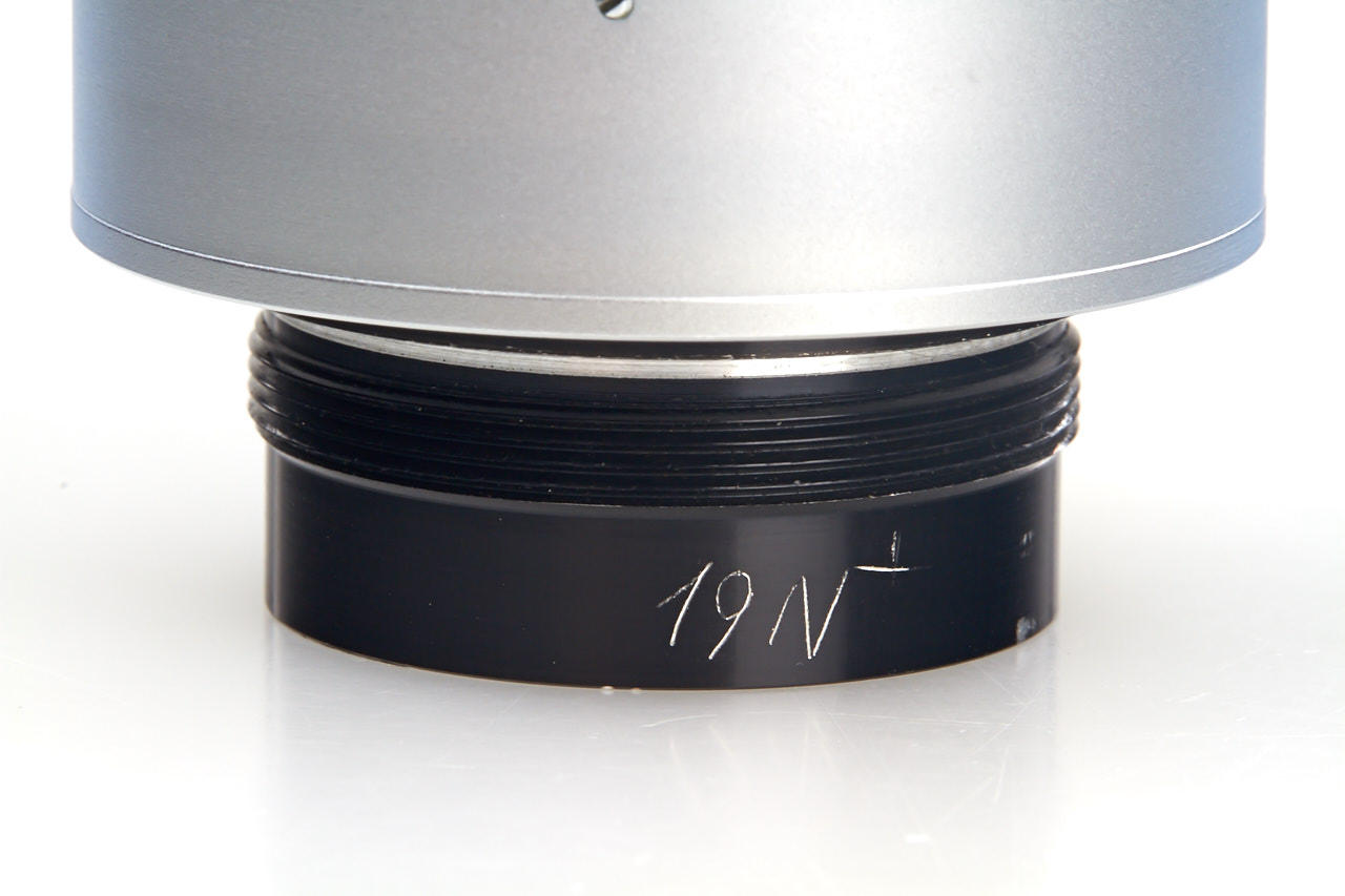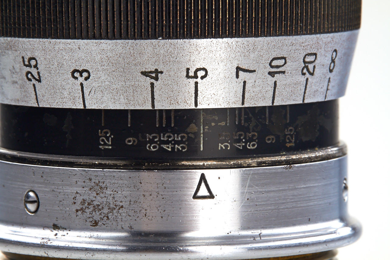 unknown Tessar-type Japanese copy of the Leitz Elmar 9cm with focal length 7.5cm, black paint and chrome finish, RF coupled