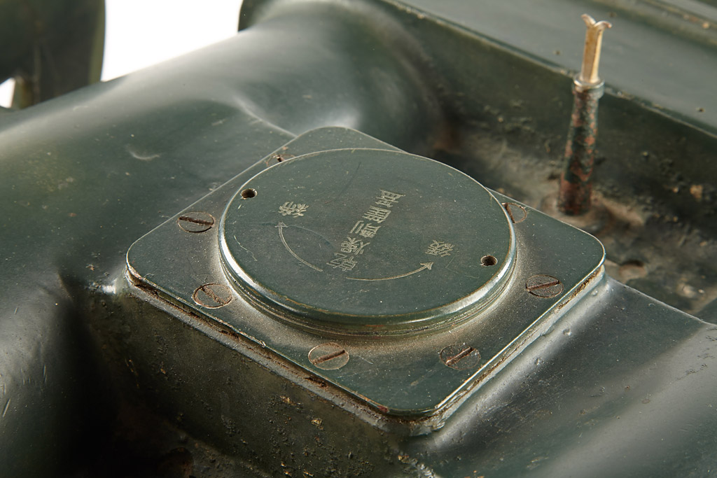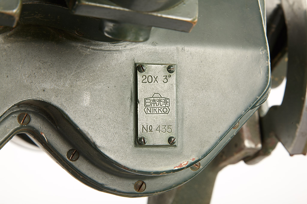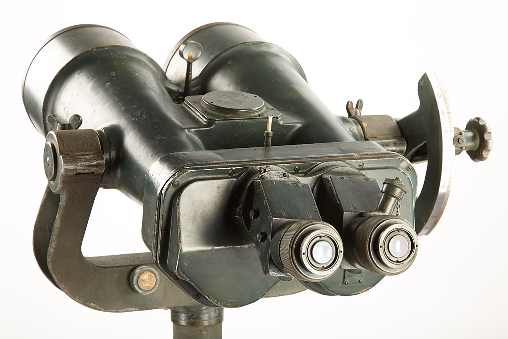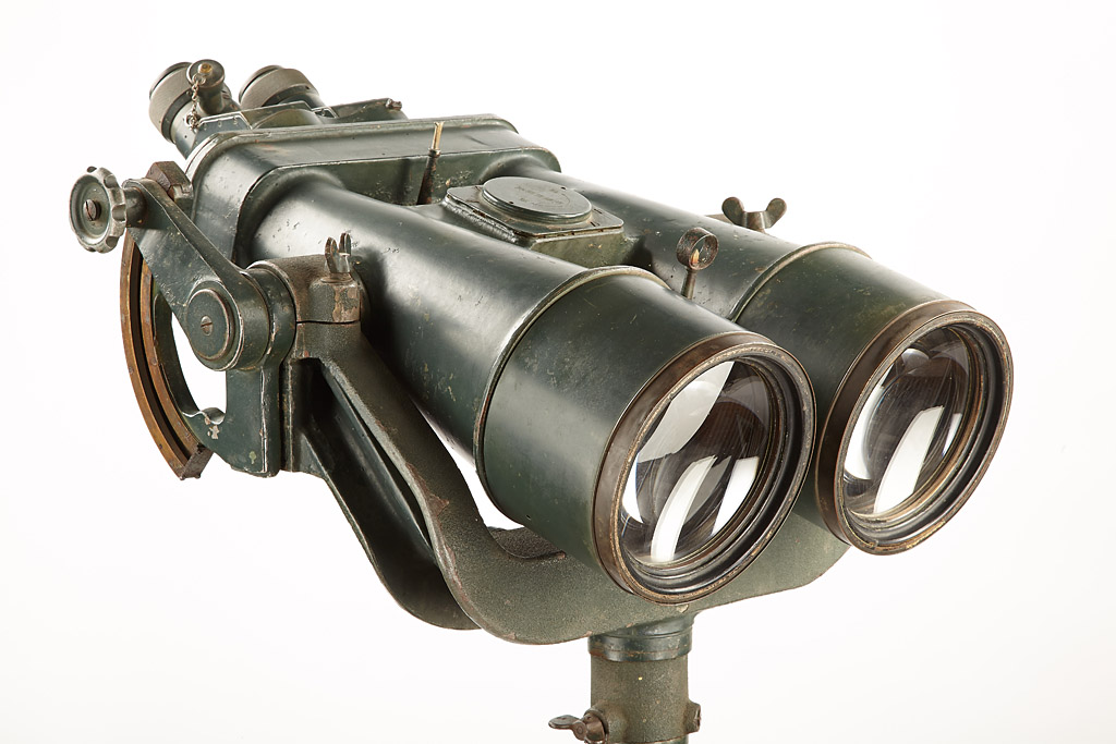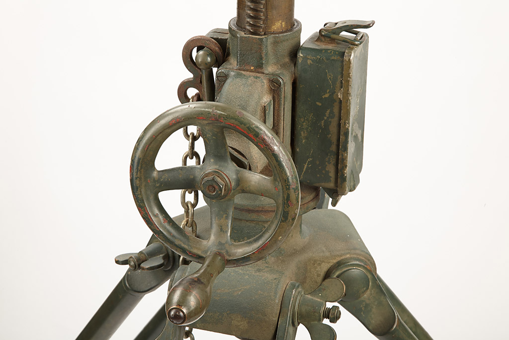 very rare military green painted 3° binoculars in good condition with special 'U'-shaped tipod adapter and matching tripod