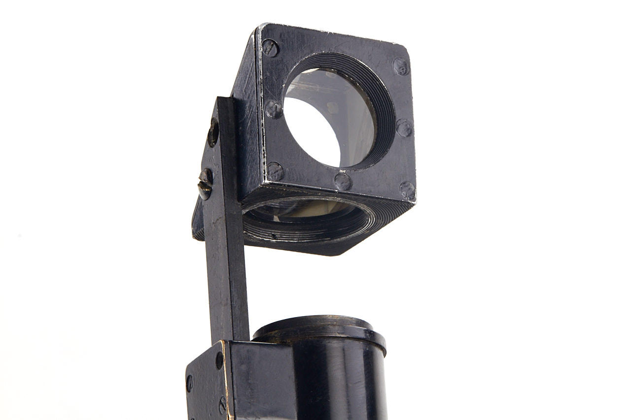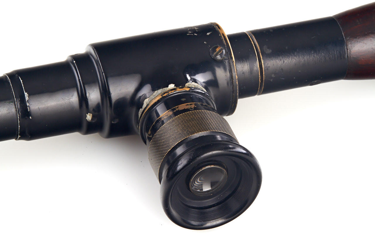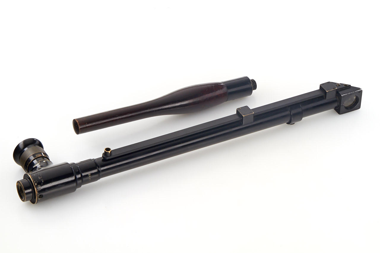 early Nikon WWII Japanese army hand-held periscope, with extendable prism, wooden handle, in original metal carrying case