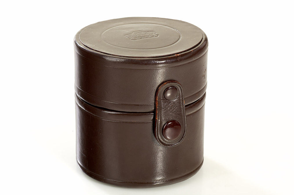 later type with external mount, clean lenses (just few cleaning marks), original 62mm filter, brown leather keeper