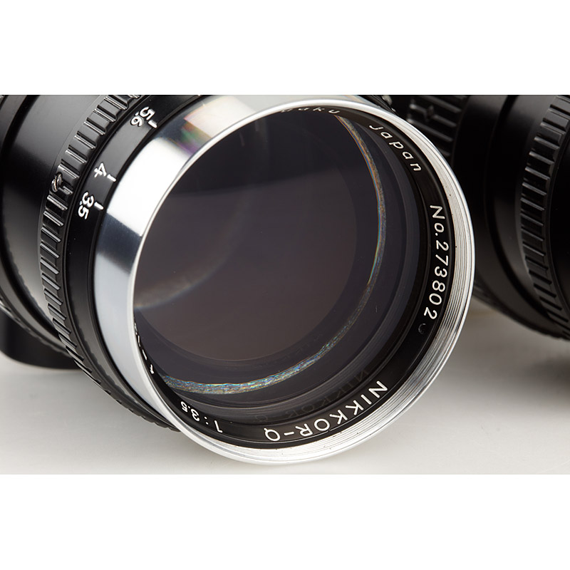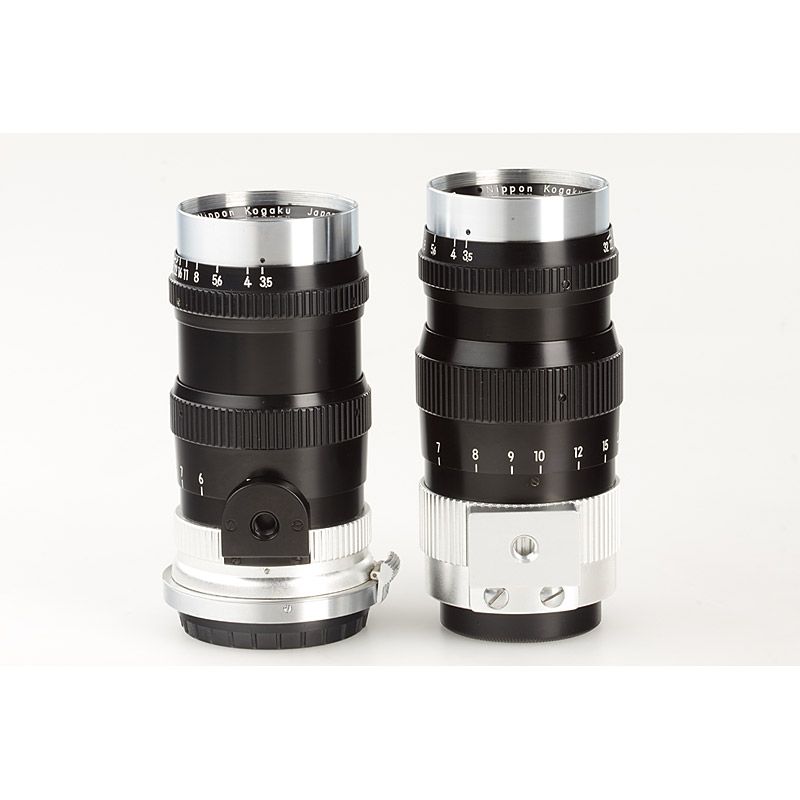 two Nikkor tele lenses with consecutive serial numbers, but different mounts - rare and interesting pair: (1) black/chrome lens no.273802 for Nikon RF mount in mint condition with hood and both caps, E-P engraved, (2) black/chrome lens no.273803 in RF coupled M39 screw mount in mint condition with hood and both caps (2) - ex Tad Sato Collection