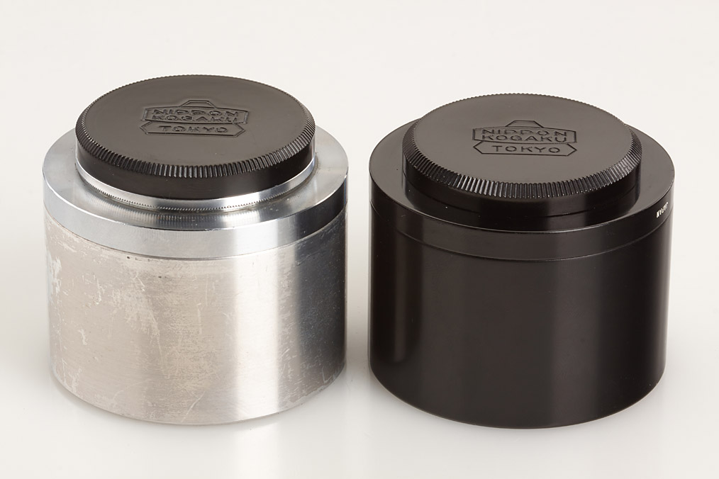 (1) chrome Contax 'C' version no.258261 in fine condition with hood and both caps, (2) all-black Nikkor-Q.C 3.5/13.5cm no.264958 in mint condition with hood and both caps (2)