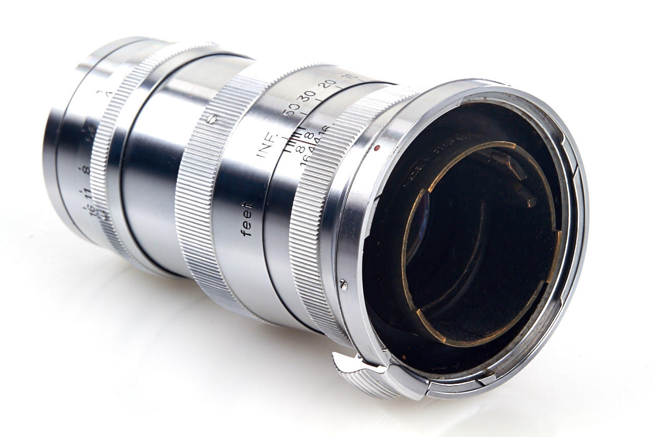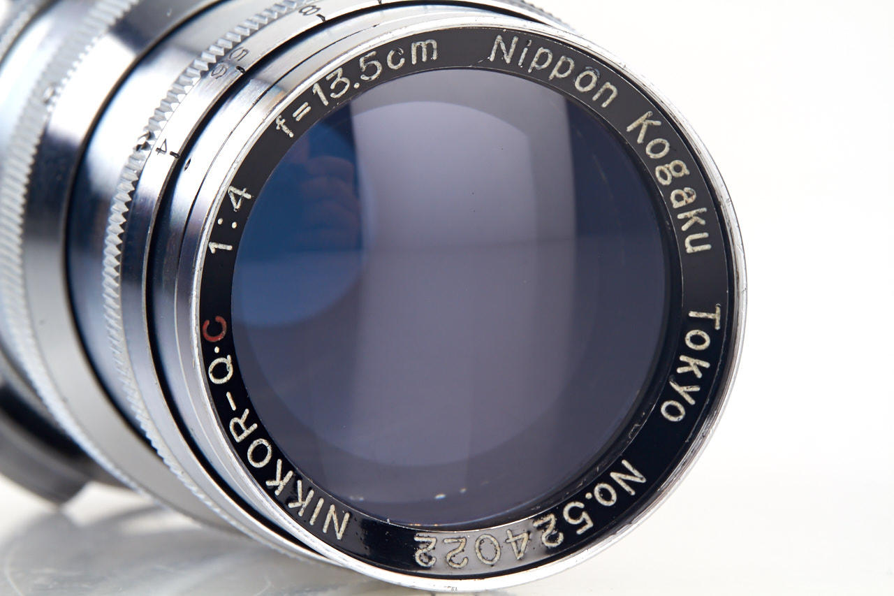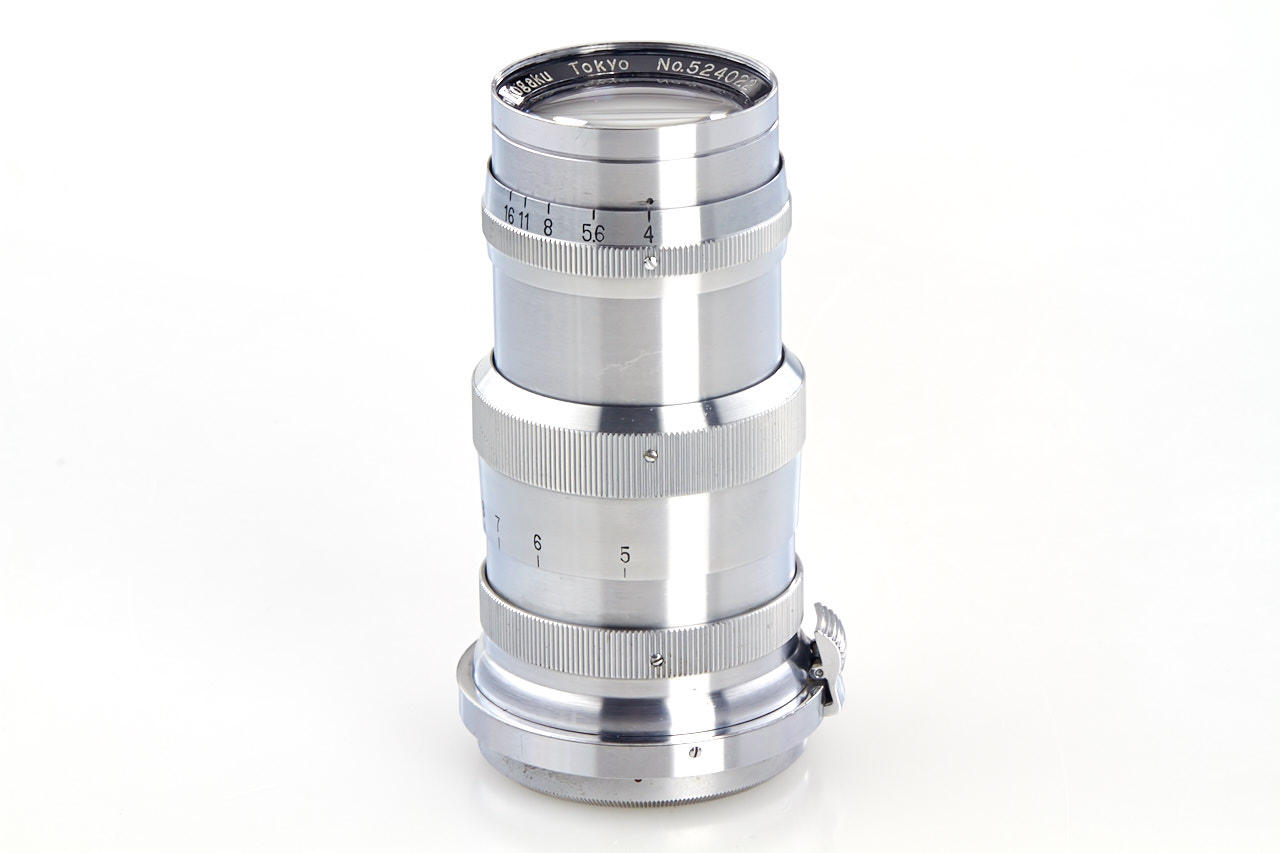 rare and early Tokyo lens in top condition, engraved 'MADE IN OCCUPIED JAPAN' on RF cam, with chrome rear cap, chrome hood and 'NIKKOR' front cap, Tokyo leather case - less than 300 lenses of this Type III MIOJ were produced for Nikon M