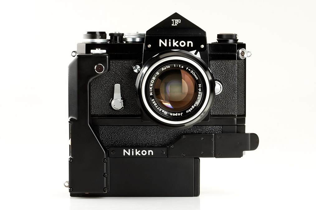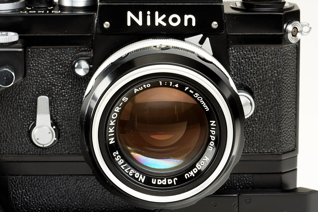 almost new set inclusive black body with eye-level finder, complete motor unit no.158310 with battery pack, Nikkor-S Auto 1.4/50mm no.377852, cap