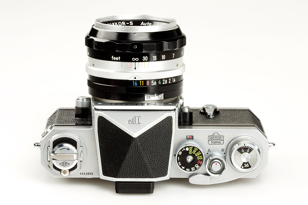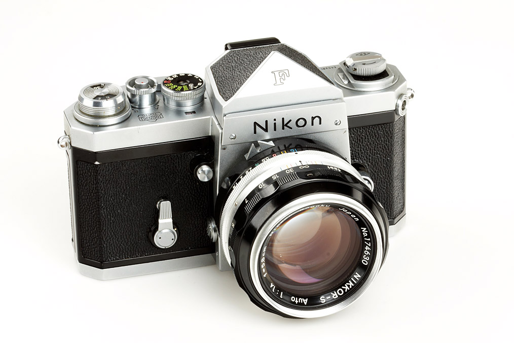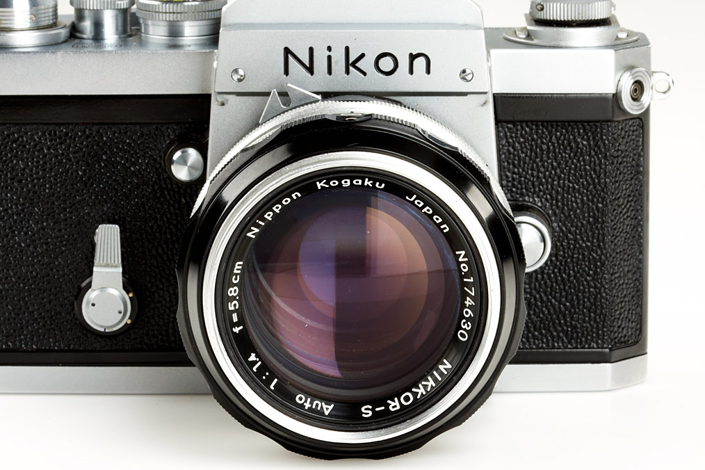 early Tokyo Nikon F with eye-level finder in near mint condition, with Nikkor-S Auto 1.4/5.8cm no.174630, both guarantee cards with matching body number and lens number, original instruction book and maker's box
