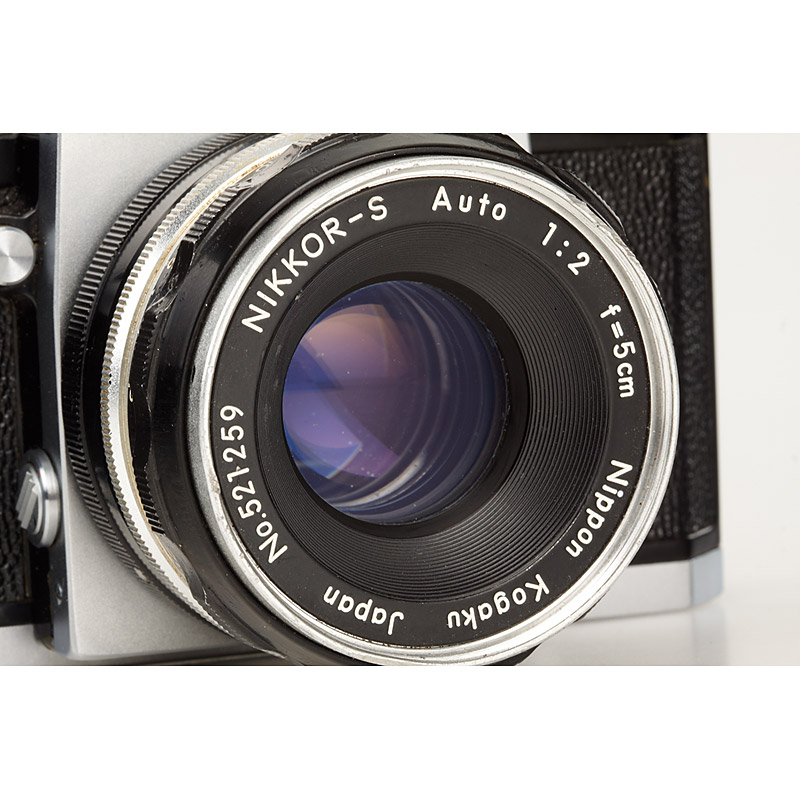 very early camera with all original features, titanium shutter, in perfect technical order, matching and very rare 'tick mark' Nikkor-S Auto 2/5cm no.521259, very rare camera in original condition
