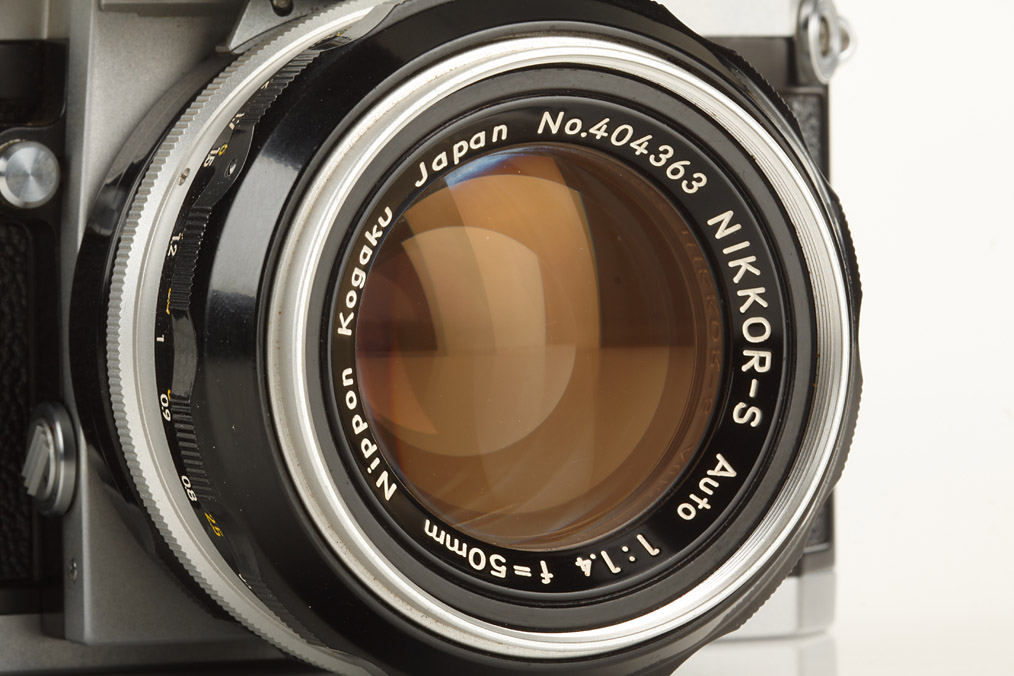Tokyo Nikon F 'red dot' body with Photomic type 2 no.975336, Nikkor-S Auto 1.4/50mm no.404363, cap, everready case strap, very rare first instructions book (Nikon F Fully Automatic Reflex), warranty cards for camera and lens with matching number, maker's box