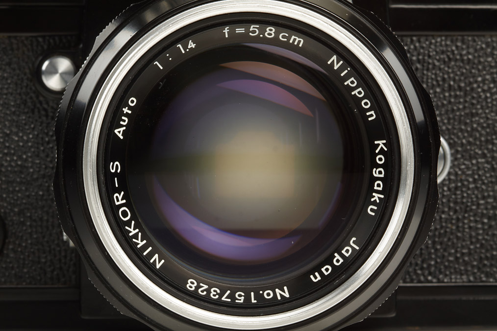 early black Tokyo body in good working order with Photomic type no.981625 (not operable), matching Nikkor-S Auto 1.4/5.8cm no.157328, cap