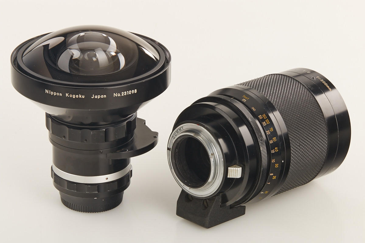 very rare outfit including two Nikon F2 Dummies (non functioning display model, both engraved 'DUMMY' on rear) nos.7109635 & 7113414 with matching Dummy Nikkor-S Auto 1.4/50mm no.1129802 (dent on front ring) and no.1202626, Nikon 2.8/8mm Fisheye Dummy no.231098 (engraved 'DUMMY' on rear), both caps, Nikon Reflex-Nikkor 8/500mm no.503408 (engraved 'DUMMY' on rear), both caps