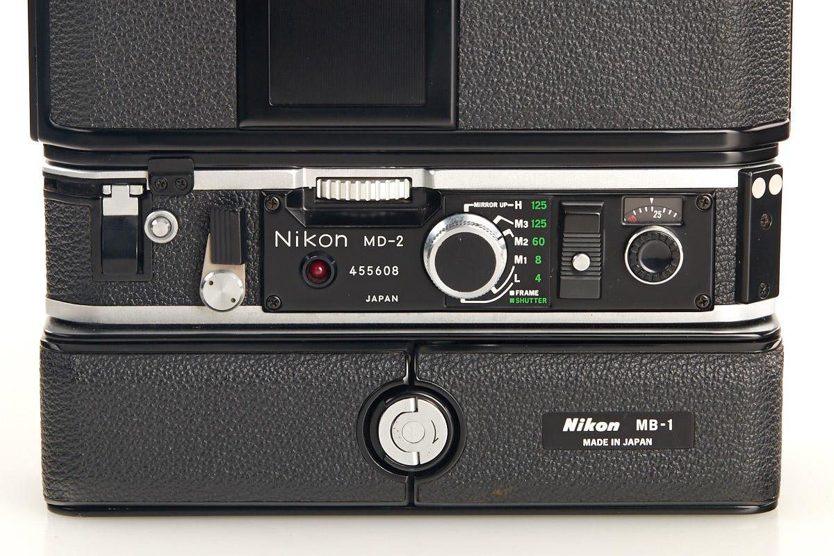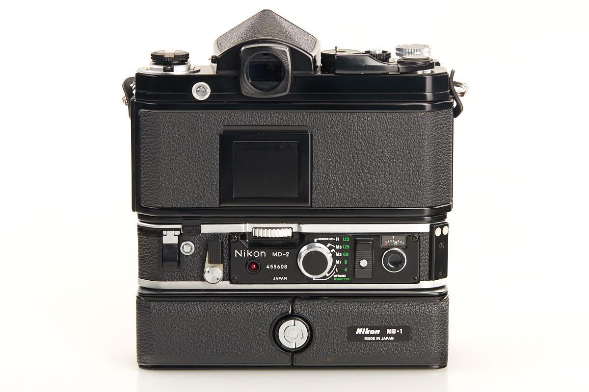 black painted F2 with eyelevel finder, cap, MD-2 motor drive no.455608, MB-1 battery pack, all in mint condition