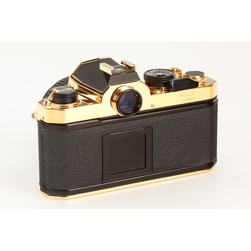 the gold plated Nikon FM was not sold to the public - only approx. 300 cameras were made for the 60th anniversary of Nikon company, with matching AI Nikkor 1.4/50mm with special number 60098, cap, Nikon Nikkormat EL display stand with red velvet top