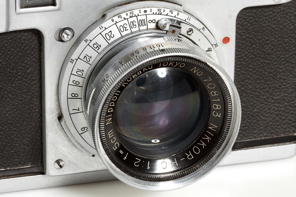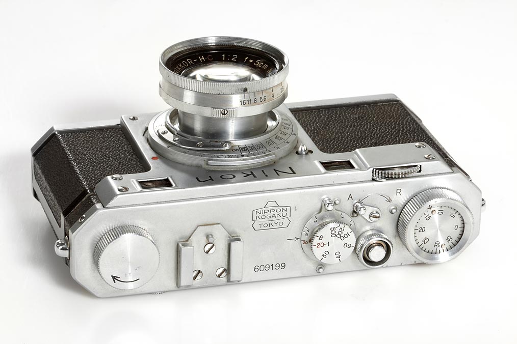 first model Nikon in very fine original condition, film format 24x32mm, very rare variation with removable take-up spool, only 2 polished film guide rails, matching back door with identical serial number 609199, it comes with the original Nikkor-HC 2/5cm no.708183, chrome Tokyo cap - only approx.750 Nikon I cameras were manufactured from 1948-1949, very few survived in this condition