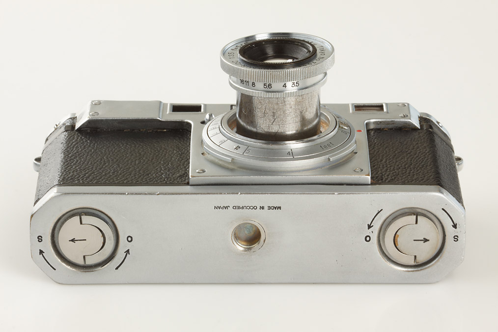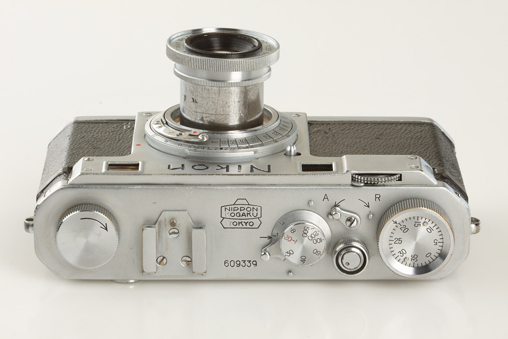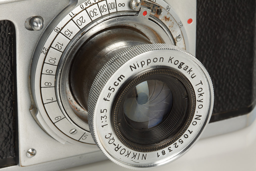 first model Nikon in original condition, version with 2 polished film guide rails, original shutter (in good working order), removable take-up spool, original back door with same number, base plate engraved 'MADE IN OCCUPIED JAPAN', matching and very rare collapsible Tokyo Nikkor-Q.C 3.5/5cm no.7052381