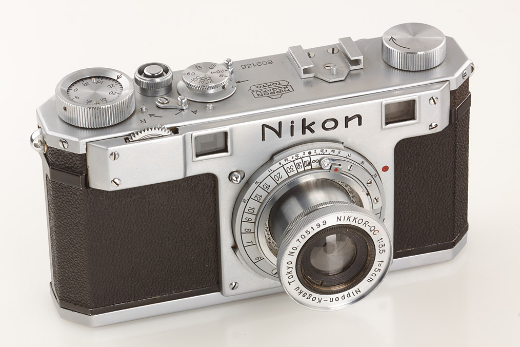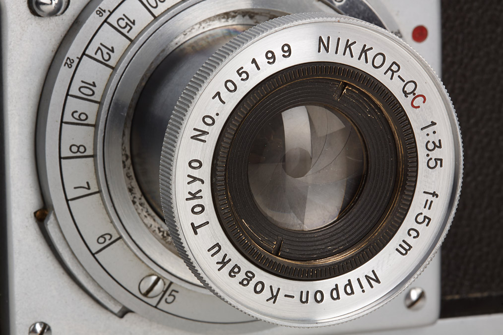 24x32mm, early first model Nikon in near mint original condition, version with 2 polished film guide rails, original shutter (sticky), removable take-up spool, original back door with matching number, base plate engraved 'MADE IN OCCUPIED JAPAN', matching, very early and rare collapsible Tokyo Nikkor-Q.C 3.5/5cm no.705199 and original everready case