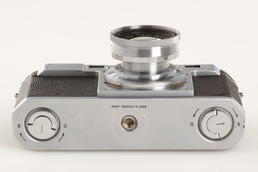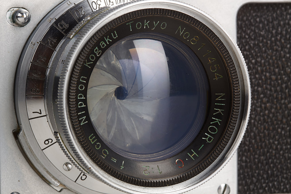 24x34mm, unsynchronised, extremely early Nikon M in original condition with all early features of the first 200 examples made (Nikon I top plate, accessory shoe, back door, etc.), in good working order with matching coll. Nikkor-H.C 2/5cm no.811454 (cleaning marks, case), 'MADE IN OCCUPIED JAPAN' engraved on base plate, matching serial number in back door, the earliest Nikon M known is number 609765 - see Robert J Rotoloni 'The Complete Nikon Rangefinder System' page 61-66