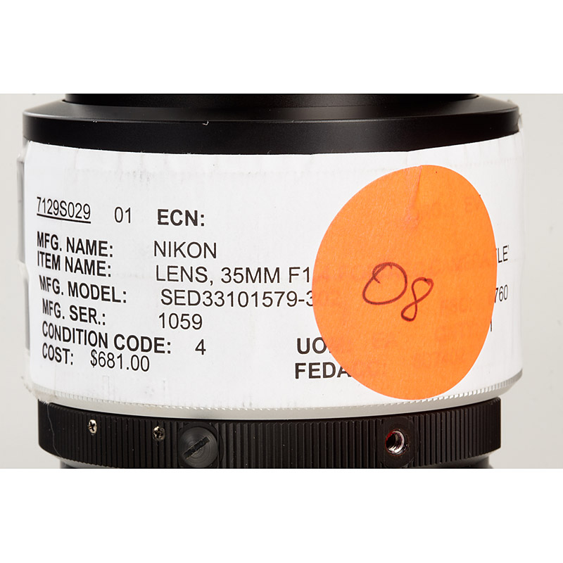 AI/S Nikkor with total different design in mint condition with typical NASA number: SED 33101579-302, S/N 1059, with NASA inventory sticker, metal front cap marked inside: P/N SED33101579-002 S/N 1159, flight records (flew on STS-51 Space Shuttle Columbia Mission on October 22nd 1992)