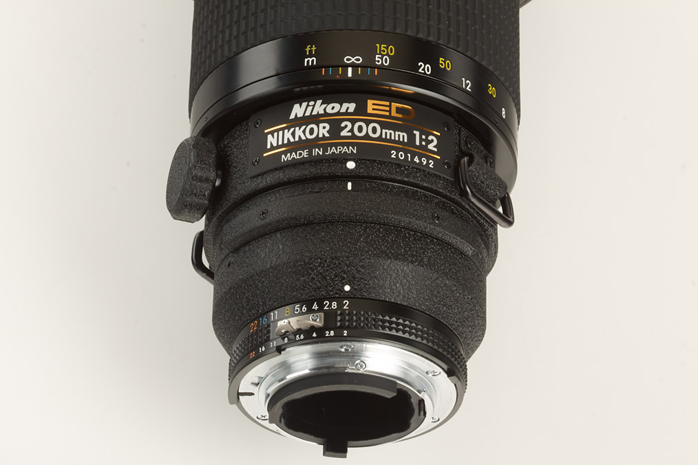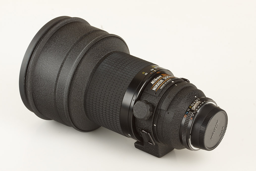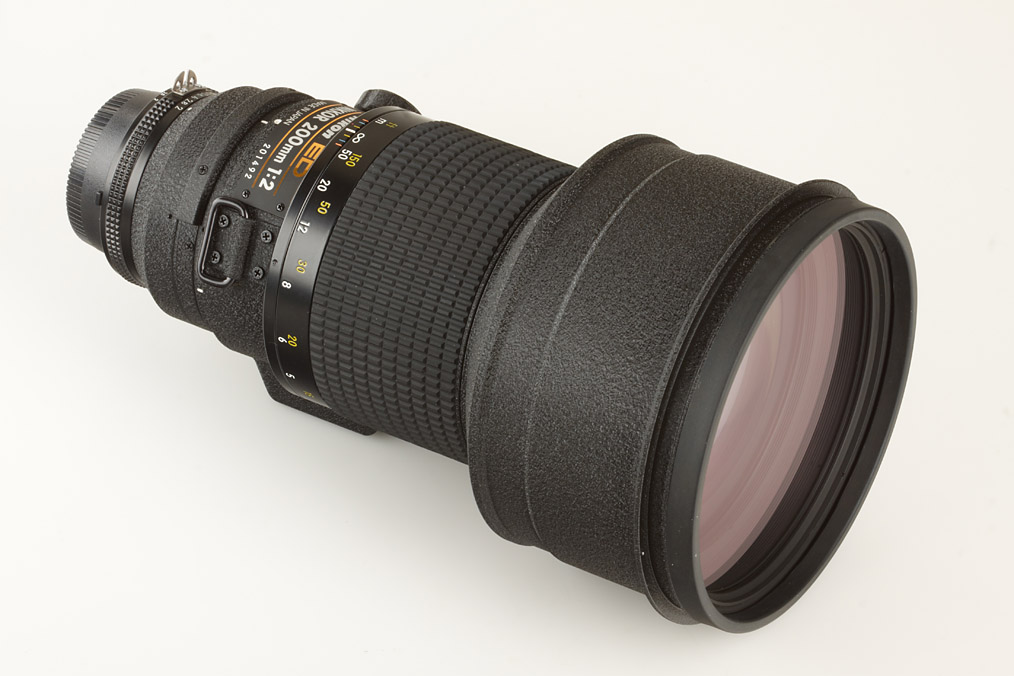 last type 200mm ED AI/S Nikkor in like new condition, rear cap, hood, strap, metal carrying case and outer maker's box