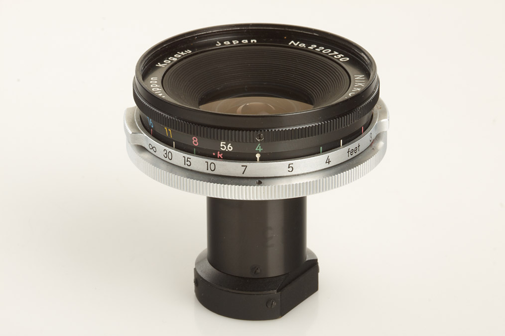 rare wide angle for Nikon F (type 1) in near mint condition with both caps, matching Nippon Kogaku Tokyo 2.1cm finder no. 200136, finder and lens with clean optics, with the very rare original inspection card, instructions and grey maker's box with matching number
